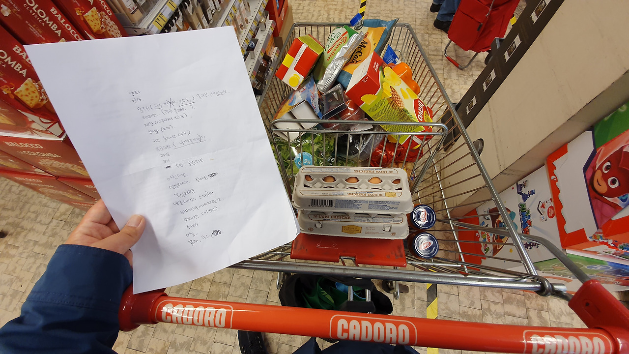 코로나 상황이 장기화되면서 서서히 이탈리아도 배달을 시행하는 마트나 상점이 늘고는 있지만 시간이 오래 걸리거나, 배송비가 비싸다. 결정적으로 이탈리아 사람들은 배송 문화에 익숙하지가 않다. 필요한 것이 있으면 내 눈으로 직접 보고 사야 한다. 이곳에서 6년을 살아온 우리도 마찬가지고... 그러나 상황이 더 장기화되면 우리도 집에서 손가락만 까딱하면서 장을 보게 될지도 모르지. 배송은 세월아 내월아 기다리겠지만....