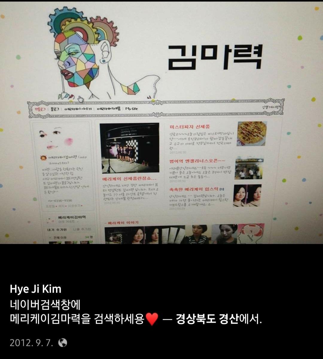 지금은 비공개로 모두 닫았지만 나는 1)'김마력'이라는 이름의 네이버 블로그를 2012년 7월부터 이탈리아에 오기 직전인 2015년 5월까지운영하면서 630여 개의 글을 개시했었다. 내가 판매하는 '메리케이'라는 화장품을 판매할 요량으로 온라인 쇼핑몰도 운영하고 블로그도 운영했는데 나는 온라인 블로그 마케팅으로 20대에 다단계에서 성공한 이력이 있다. 이곳에 모인 글들은 언젠간 '티코에서 벤츠까지'라는 매거진으로 발행을 해봐야겠다고 생각했는데 내 인생에 다시없을 순간들을 이렇게 기록해두고 가끔 꺼내어 보면 사라졌던 열정이 다시금 샘솟기도 하고 유튜브를 할 때나 글을 쓸 때 번뜩이는 아이디어가 되기도 한다. 앞으로도 내 인생에 가장 큰 자산이 바로 이때의 기록이 아닐까 싶다.