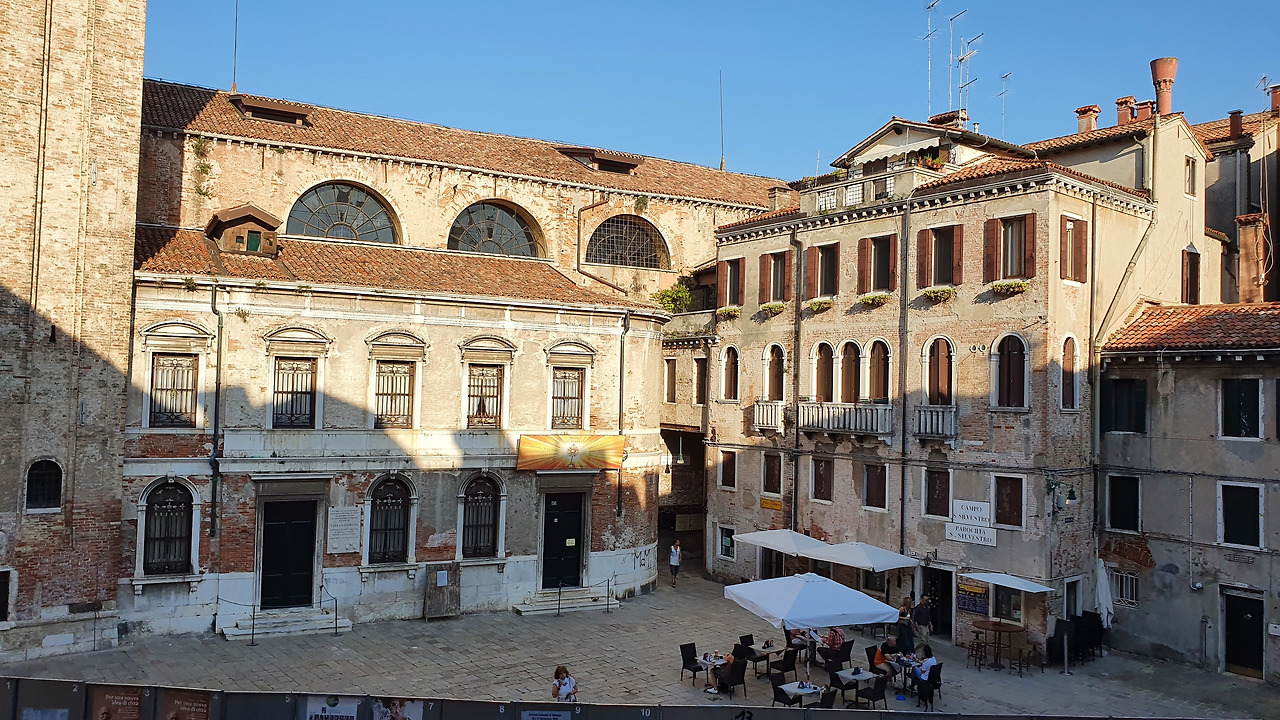 베네치아에서도 산마르코 광장 다음으로 1년 365일 가장 관광객으로 북적이는 리알토 다리를 마주 보고 아는 사람들만 드나들법한 한적한 골목으로 꺾어 들어가면 Campo.S.Silvestro가 나옵니다. 리알토 다리에서 불과 3분만 걸었을 뿐인데도 놀이동산처럼 붐비는 관광지에서 벗어난 느낌이 듭니다.