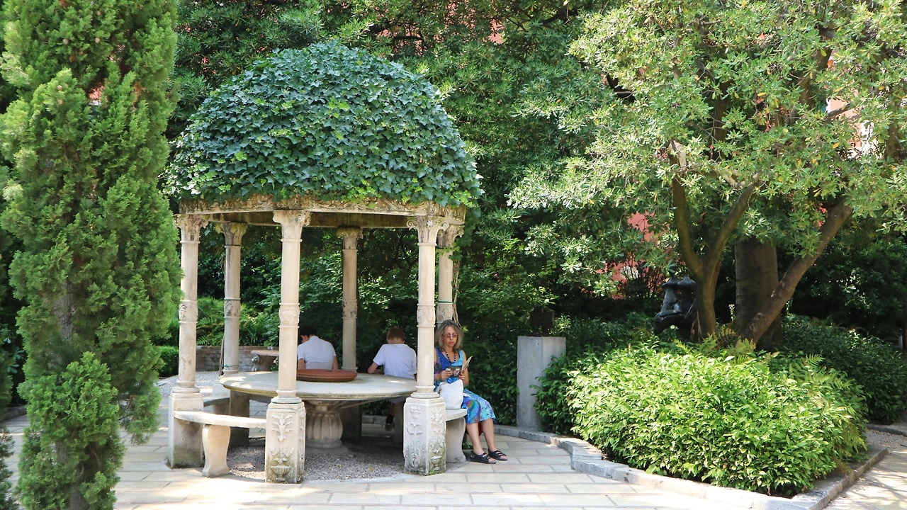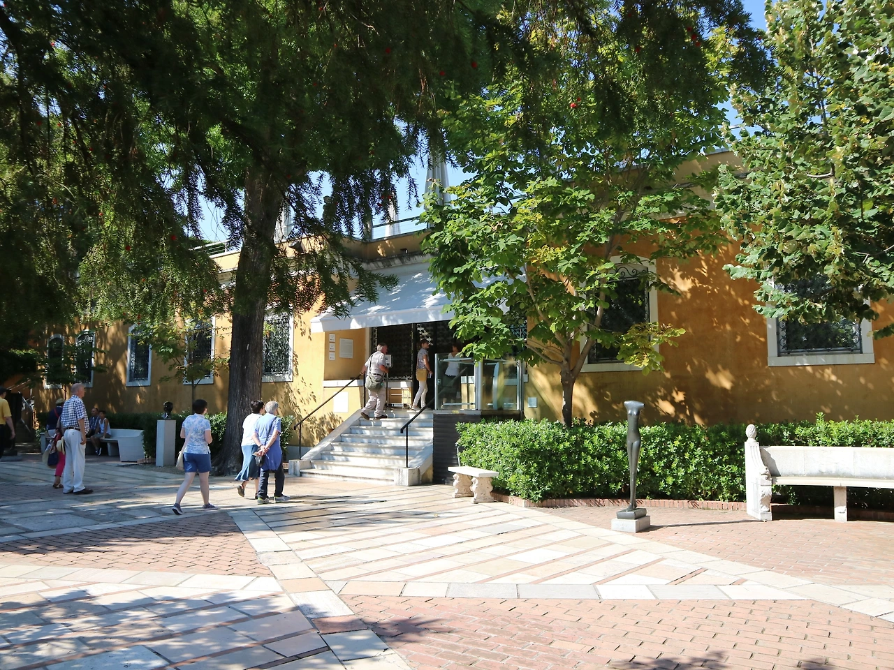 녹음이 우거진 페기 구겐하임 미술관의 입구