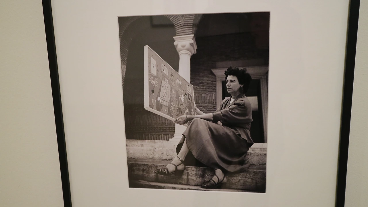 딸 페긴 베일의 그림을 들고 있는 페기 구겐하임