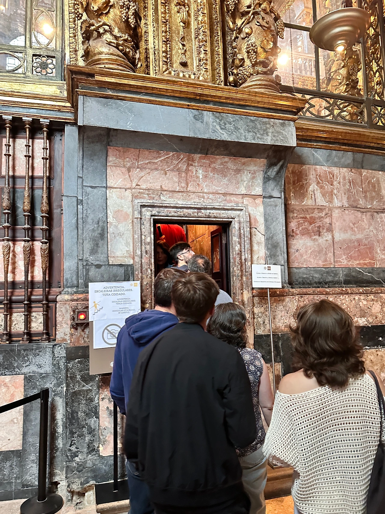 야고보의 어깨를 만지러 올라가는 길, 성당 한가운데 보이는 저 야고보의 동상 뒤로 올라가는 거다