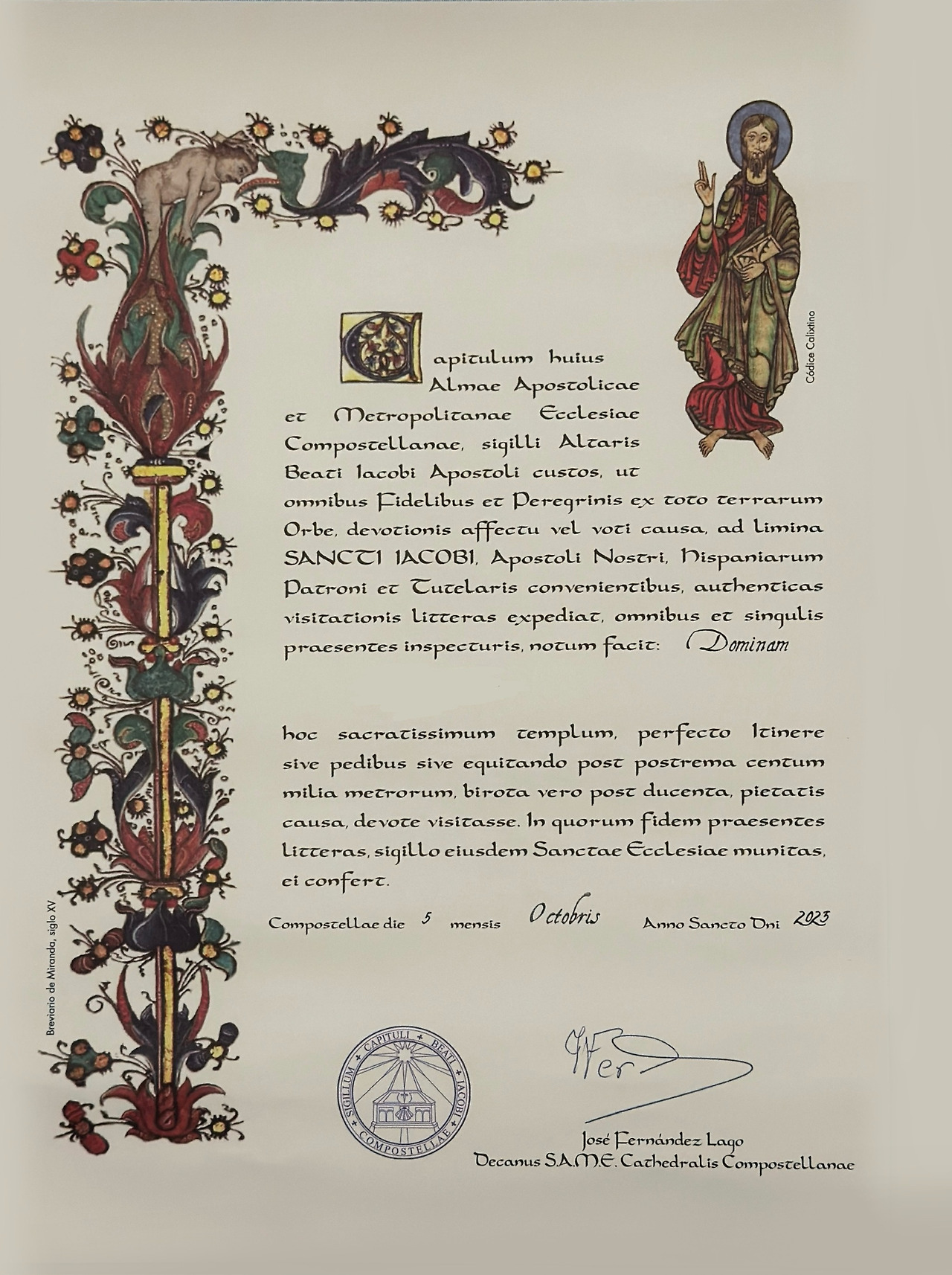 성 야고보 대성당에 도착하였으며, 성 야고보의 무덤 앞에서 기도하였음을 증명합니다.