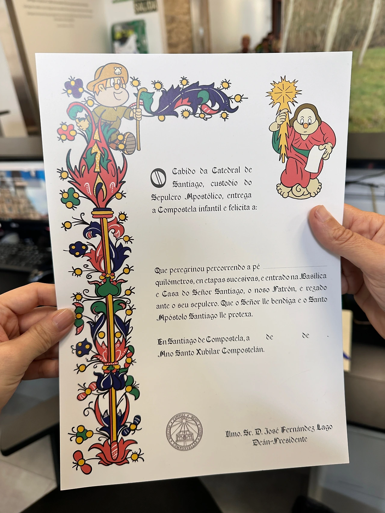 축하해 예쁜 아가야! 오늘 네가 받은 증명서와 너의 부모님의 것과 아주 조금은 다르게 생겼어도 이번이 너의 첫 산티아고 순례길이었다는 데는 변함이 없을 거야! 건강하게 자라서 순례길에서 보길 바랄게.