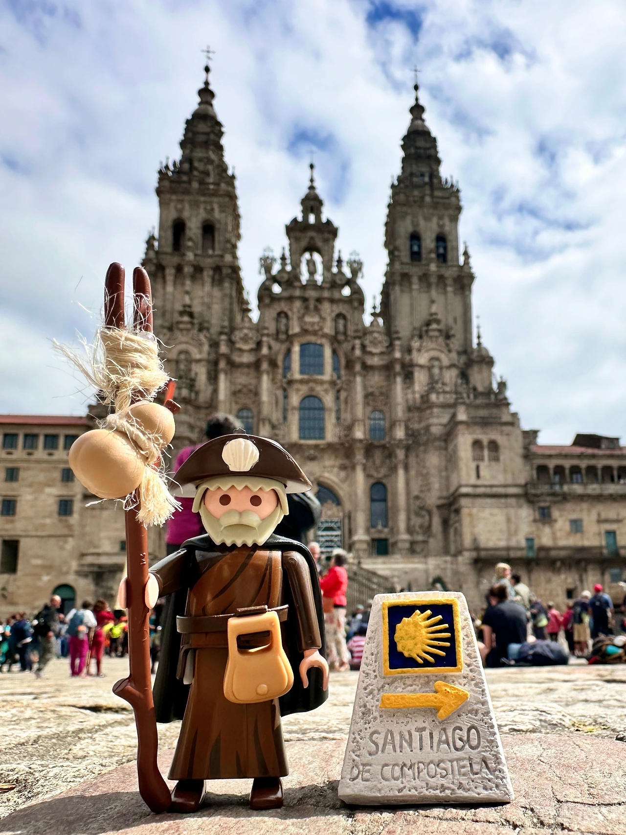 평화로운 순례자 사무실의 오후 근무를 위해 오늘도 일찍 나와 산티아고 대성당 앞에 앉아 가능한 이 분위기와 감상을 눈에 담으려 노력한다. 오늘은 특별하게 어제 선생님에게 받은 선물 중 하나인 순례자 플레이모빌을 데리고 나와 비슷한 크기의 비석도 사서 대성당을 배경으로 사진을 찍었다. 산티아고 대성당 앞의 순례자라니 이 얼마나 컨셉이 명확한 사진인가 싶어 아주 마음에 든다. 순간 작년 순례길 중 팜플로나에서 샀던 이탈리아 집에 있는 또 다른 순례자 플레이모빌 생각이 나는 건 뭘까.