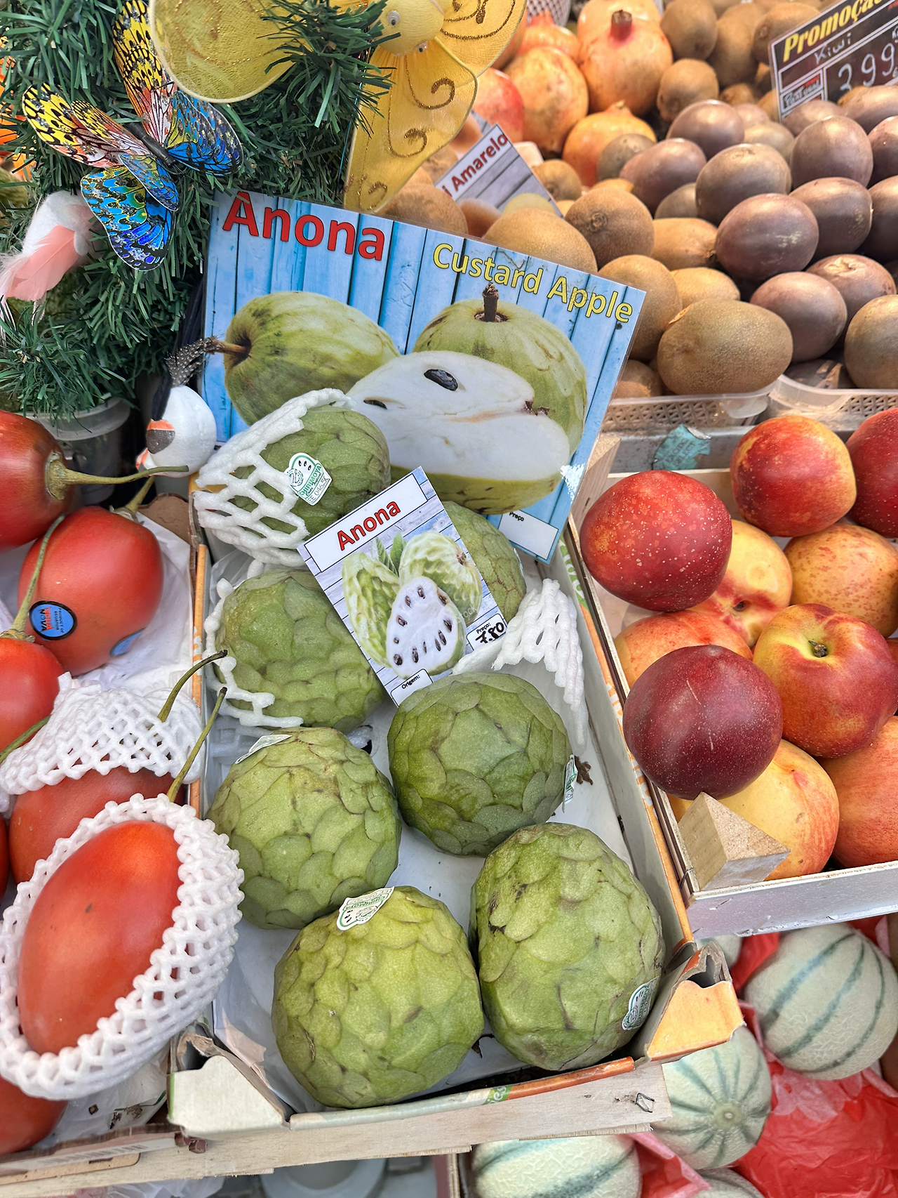 포르투에 있는 많은 성당 중 나의 원픽인 알마스 성당을 본 뒤 아기자기한 볼량시장에 들러 언니가 꼭 사 오라고 한 올리브오일도 한 병 사고, 이름 모를 과일을 궁금해하시던 부모님과 하나 사서 나눠 먹어보기도 했다. 부모님은 수년 전 우리와 함께한 영국, 프랑스 여행에서 제철 납작 복숭아를 사서 참 맛있게 먹었던 게 유독 기억에 남는다고 하셨다. 신기한 과일을 보며 궁금해하시는 부모님을 보니 비슷한 추억을 하나 더 만들어 드리고 싶어서인지 냉큼 사게 되더라. 아노나라는 이 과일은 커스터드 애플류 라는데 한국에서는 슈가애플 또는 석과라고도 한단다. 속은 하얗고 서양배 같은 식감에 과즙이 풍부한 게 비록 손은 다 젖었어도 엄마 아빠랑 같이 시도하는 재미, 이거 하나면 된 거야. 소소하지만 우리의 속도로, 우리가 원하는 곳들을 보며 다니니 모든 게 다 소확행으로 다가온다.