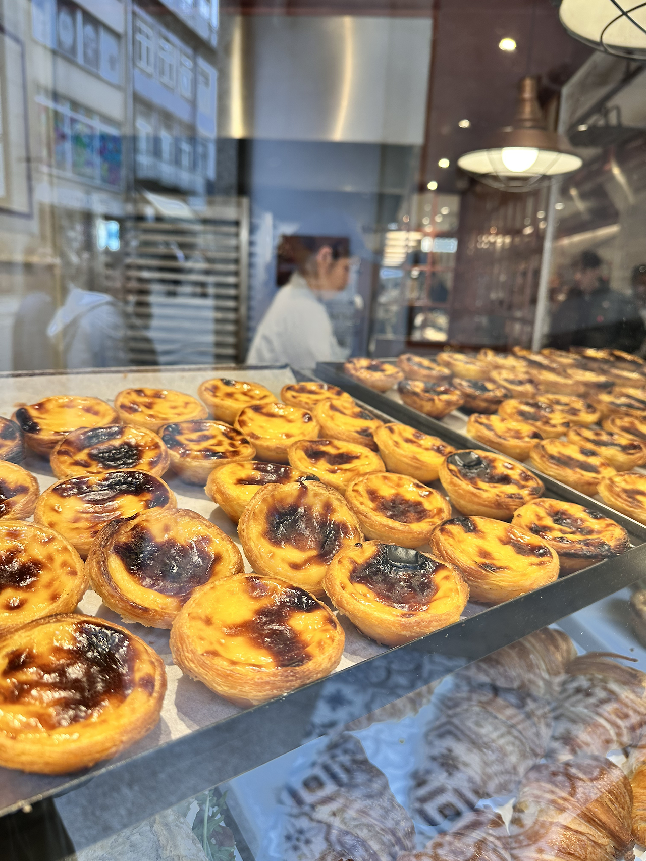 여러 번 언급했지만 나는 디저트를 사랑하는 간식대장이다. 맛있는 한 끼 식사와 잘 만든 케이크 한 조각에 커피를 선택하라고 한다면 난 고민 없이 후자를 선택할 정도로 디저트가 내게 주는 행복감은 남다르다. 이번 3박 4일의 포르투 여행에서 큰 재미 중 하나는 역시나 에그타르트 탐방. 포르투갈 사람들은 파스텔 드 나타, 간단하게 나타라고 부르는 이 에그타르트를 마음껏 먹으러 다녔다. 나타의 기원은 수도원의 수도사들이 계란 흰자는 빨래에 쓰고 남은 노른자로 디저트를 만들기 시작하면서 생긴 음식이라고 하는데 이름 그대로 ‘파스텔 (페이스츄리), 드(de,~의), 나타 (유제품)‘. 즉 계란으로 만든 파이라는 뜻이다. 우리가 한국에서 포르투갈식이라고 부르는 에그타르트는 파이지가 겹겹이 부서지는 아주 바삭한 빵에 계란맛이 많이 도는, 한 입만 먹어도 ‘계란으로 만든 거구나!’하는 느낌인데 이곳은 다르다. 바삭하지만 덜 부서지는 도우 안에 계란맛보다는 커스터드에 더 가까운 걸쭉한 속이 가득 채워져 있다. 맛을 보아도 계란맛은 아주 미미한 게 커스터드 맛이 지배적이고, 특히나 속이 한국처럼 구운 빵의 단단한 제형이 아닌 흘러내릴 것 같은 촉촉한 크림형태를 유지한다. 속이 크리미 한만큼 갓 나온 에그타르트는 잘못 집어 먹으면 입천장을 다 데일 수 있어 주의해야 한다. 실제로 매장에서 갓 나온 에그타르트는 매대에 진열해 놓고도 몇십분을 식혔다가 팔고, 재고가 막 나온 것 밖에 없을 때는 “정말 뜨거운데 그래도 괜찮아?” 물어보고 파는 걸 보면 어느 정도 뜨거운지 제대로 느낌이 온다. 갓 나온 에그타르트를 받아놓고 한참을 이야기하고 약 10분 뒤에 먹었는데도 앗 뜨거워… 입천장이 얼얼해졌다. 포르투의 에그타르트는 빵 혹은 파이라기 보단 핫크림 온 브래드, 빵 위의 뜨거운 크림이라고 생각하는 게 나을 정도다.