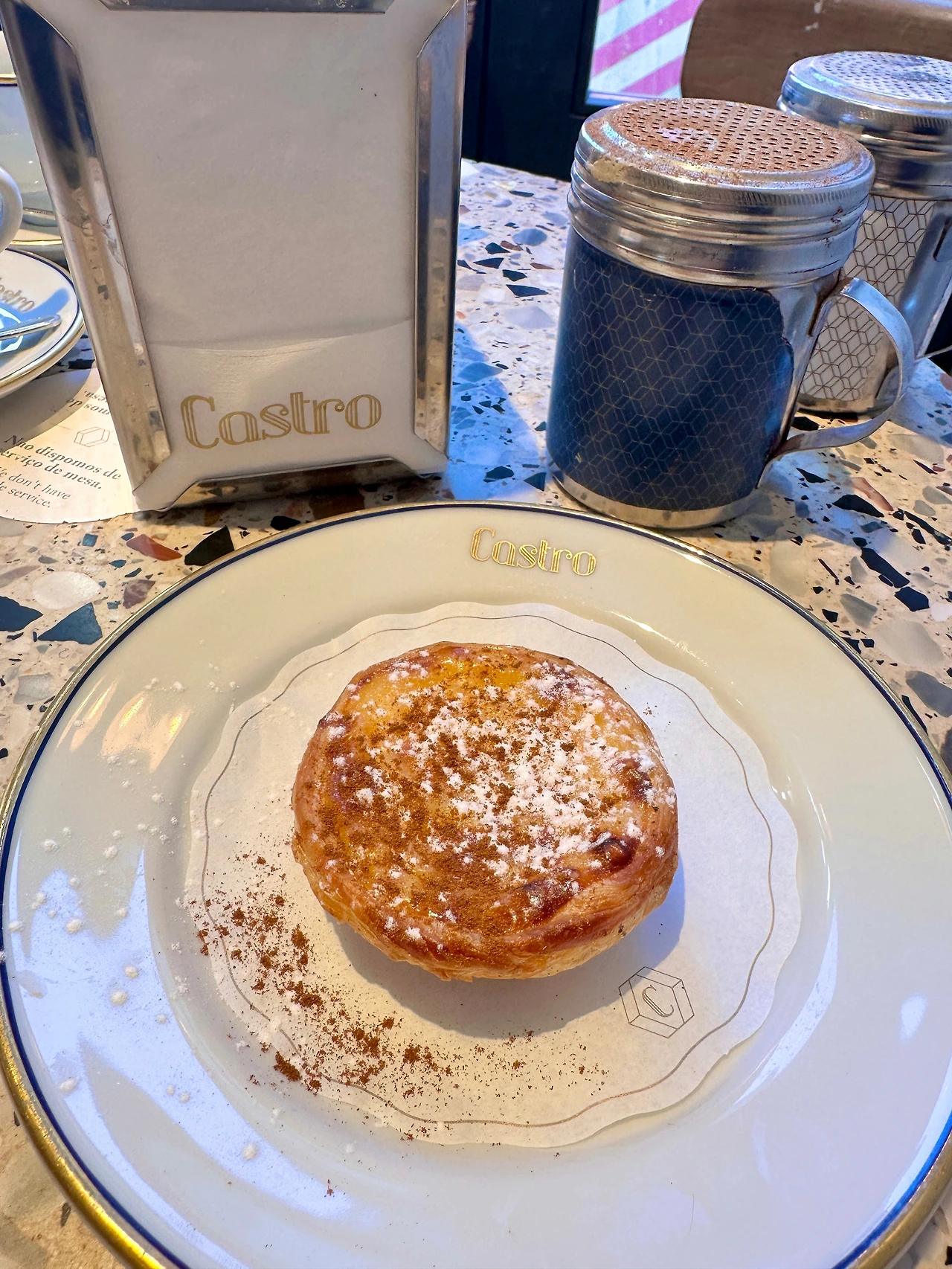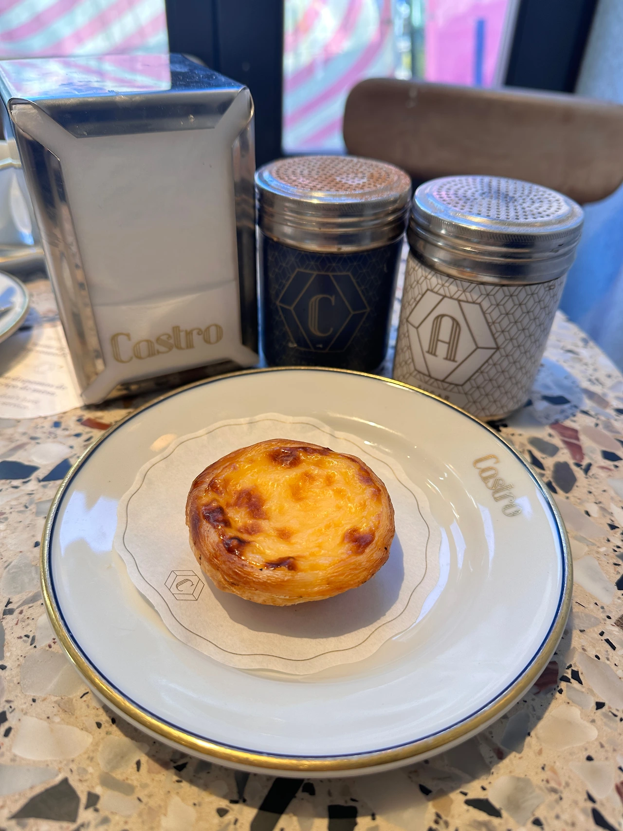 5년 전이나 지금이나 나의 1위 에그타르트는 카스트로였다. 엄마와 아빠는 만테이가리아와 카스트로 두 곳에서 맛보셨는데 음식에 평을 잘하지 않는 우리 어무이도 “여기가 훨씬 맛있다” 하셨을 정도. 인테리어가 정말 세련되고 예쁜데 한 가지 단점은 가게가 작고 포르투에 한 곳밖에 없다. 그래도 꼭 와서 먹을만한 게 내가 생각하는 달기, 에기쉬한 계란의 맛, 파이지의 바삭함 모두의 발란스가 가장 좋은 곳이라고 본다. 만테이가리아는 먹을 때 ’달다’라는 생각이 가장 먼저 들고, 파브리카 다 나타는 ’발란스 괜찮네’ 생각이 든다면 카스트로는 한 입 먹고 ‘맛있다 ‘라는 표현이 튀어나온다. 식어도 맛있어서 테이크아웃도 많이 해가고 특히 이동 중에 드시는 분들도 많다.