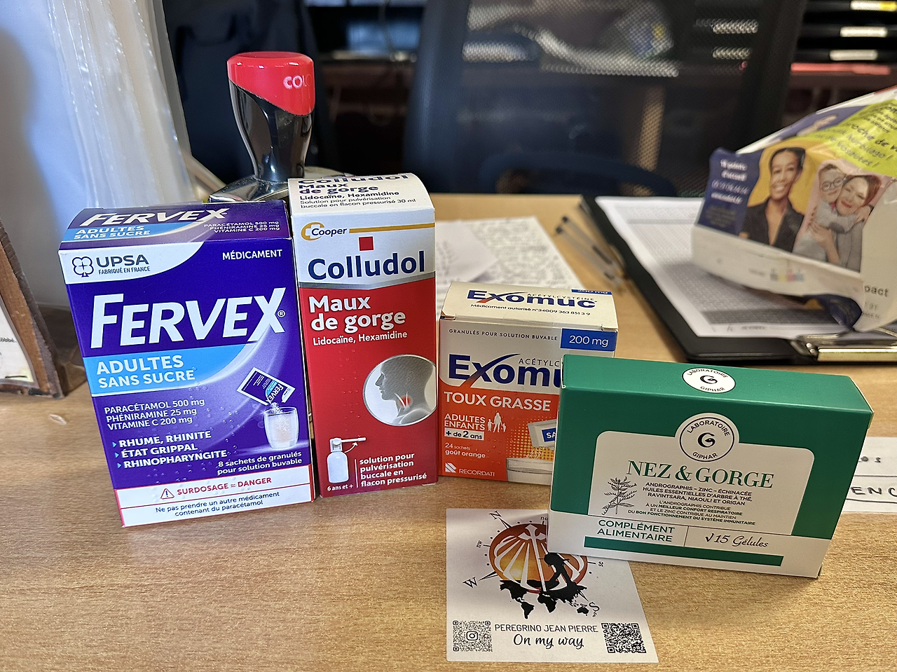 어제 약을 먹고 후딱 잠이 들었지만 아침에 목이 칼칼한 게 흠… 감기가 맞긴 한 것 같다. 이른 오전에는 그나마 순례자 사무실이 여유가 있는 편이라 사람이 더 안 올 때를 기다렸다 조세와 미셸린에게 나 금방 약국 좀 뛰어갔다 오겠다며 길을 나선다. “아이고 어디가 아픈 건데 그래, 여기 걱정 말고 뛰지 말고 천천히 다녀와.” 나 먼저 걱정해 주시는 분들이 같은 자원봉사자라서 마음 편하고 감사하다. 그래서 더더욱 자원봉사자로서 내 몫을 제대로 해내 이 친절하신 분들께 피해가 안 돼야 한다는 생각에 냅다 약국으로 달려간다. 어젯밤 자기 전에 한 한국분이 블로그에 올려두신 프랑스약 리스트를 캡처해 두었기에 약사분께 사진을 보여드리고 가능한 건 다 구입했다. 이것저것 가릴 상태가 아니라 그분이 추천해 주신 목 아플 때 뿌리는 스프레이, 몸살감기에 좋은 물에 타먹는 약들은 물론 약사에게 추천받아 종합 감기약까지 한 봉지를 사 왔다. 평소보다 살짝 강하게, 이런저런 약을 먹더라도 빨리 이 감기 기운을 떨치고 자원봉사하는데 지장만 없었으면 하는 마음이 뿐이다