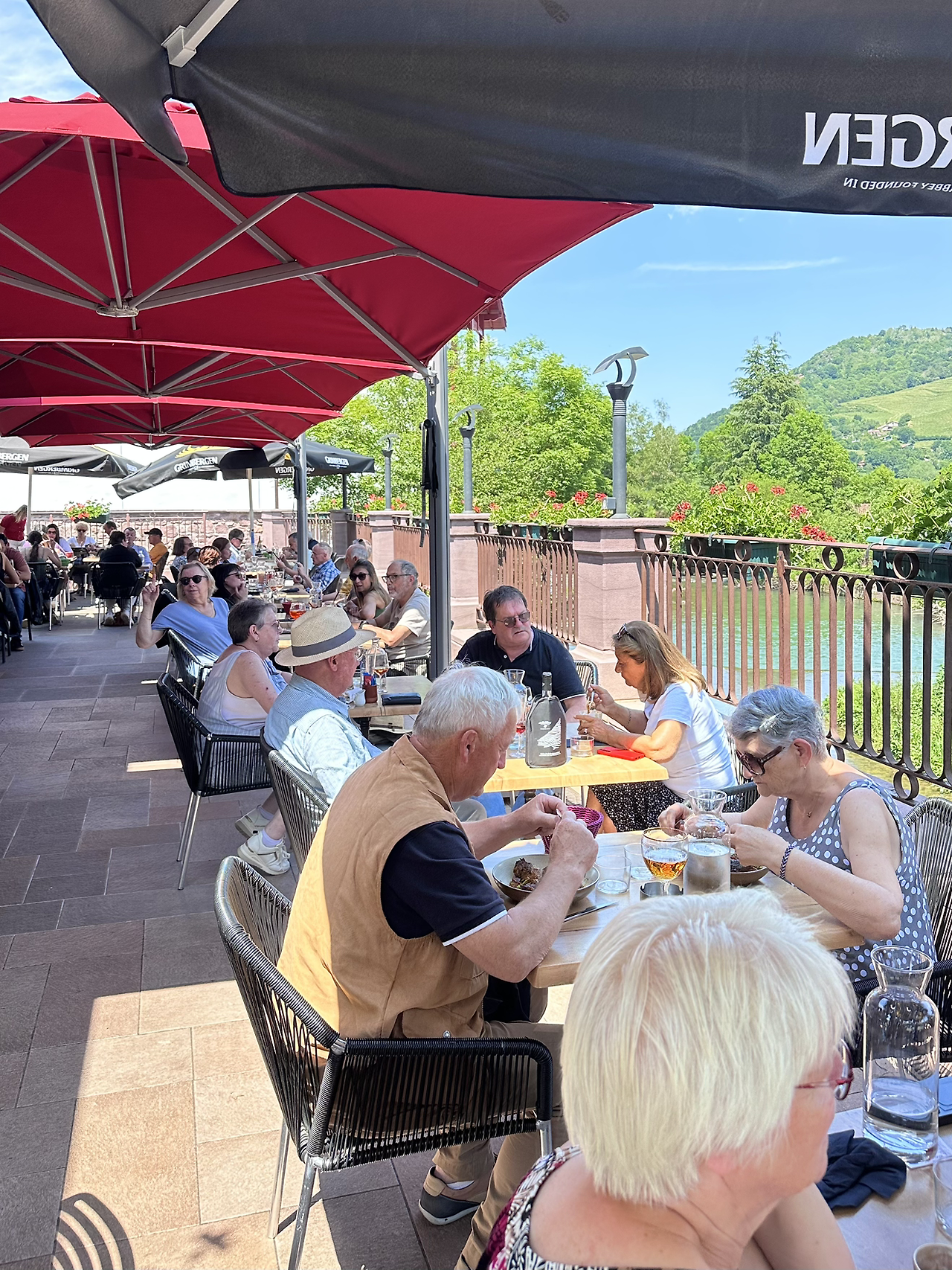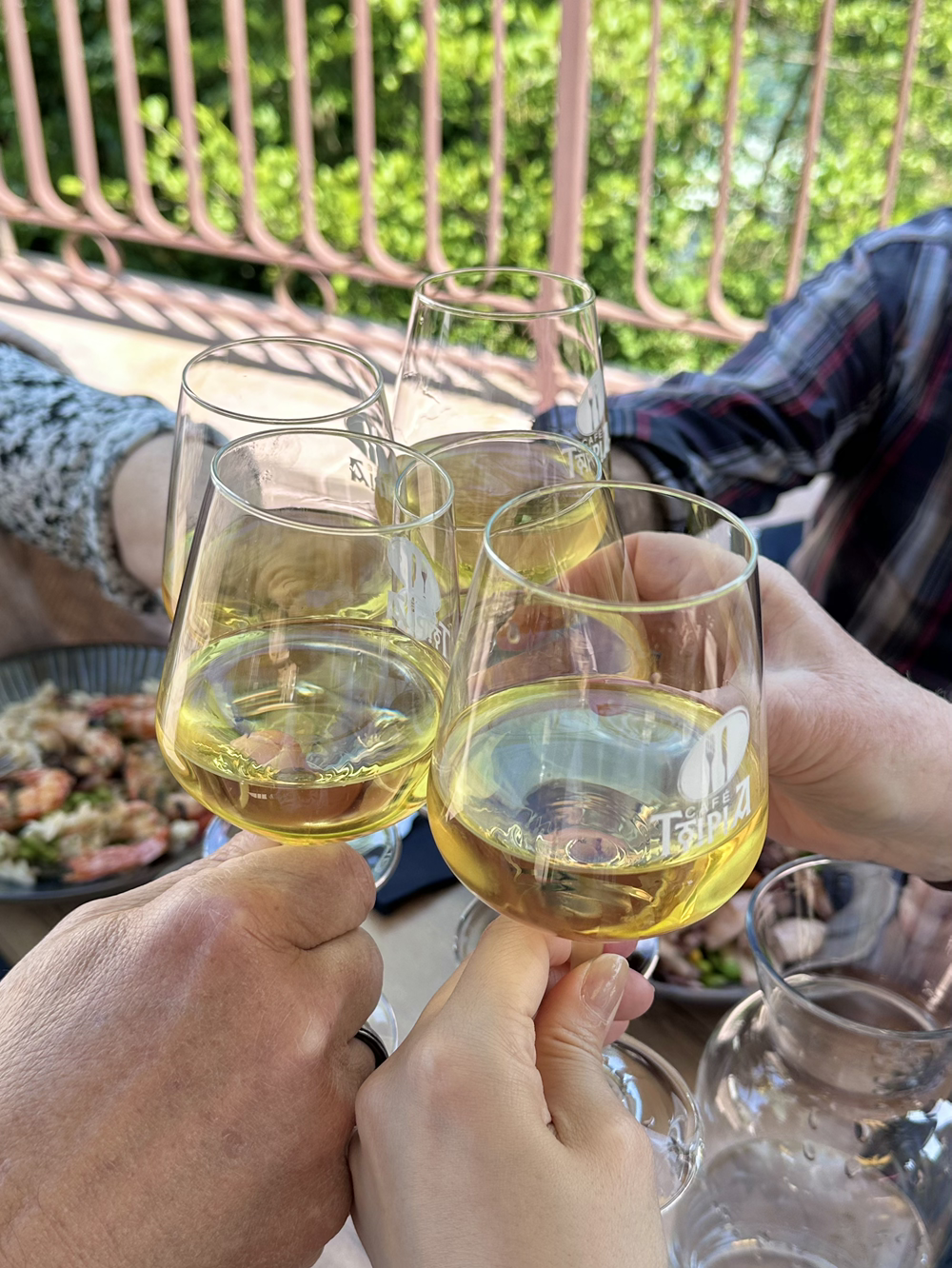 신나는 점심시간, 오늘 마지막으로 다 함께 밖으로 나가 점심을 먹기로 했다. 내일 오전이면 우리의 자원봉사 근무가 끝나고 이어서 일할 다른 팀의 자원봉사자들이 도착해 함께 점심을 먹을거라 오늘 점심, 오늘 저녁이 우리끼리 하는 마지막 식사다. 이곳 생장에서 살고 있는 장베누아가 추천하는 레스토랑 Café Ttipia에 왔는데 와 사람들이 벌써 가득 차있네. 장베누아의 말로는 이곳이 음식 종류도 다양한데 가격도 합리적이고 맛있는 바스크 스타일 요리도 많다고 본인은 혼자일 때는 늘 이곳에 온다고 했다. 음식을 시키고 기다리는데 어디선가 와인이 한병 도착했다. 응? 우리 와인 주문 아직 안 했는데? 알고 보니 먼저 떠난 자원봉사자 버나드가 우리의 마지막 날 함께 마시라고 와인을 미리 계산해 두고 간 거였다. 화창한 정오에 아주 잘 어울리는 프루티 한 화이트와인이었는데 한잔씩 들고 다 함께 “버나드를 위하여”를 외치며 비디오를 찍어 버나드에게 보냈다. 즐거운 점심되고, 함께하지 못하지만 마음은 같이 있다는 버나드의 답이 바로 왔다. 이곳에서의 자원봉사자들은 정말 진한 우정으로 서로를 챙기는 게 산티아고 순례길을 걷는 것만큼이나 동지애가 생기게 하는 사람들이다. 물론 동지애도 우정도 다 사람 나름이지만 내가 있는 5월의 한주는 정말 다시 만나고 싶어지는 애정 많고 사랑스러운 분들이라 감사한 마음에 가끔 어느 순간 뭉클해지곤 한다.