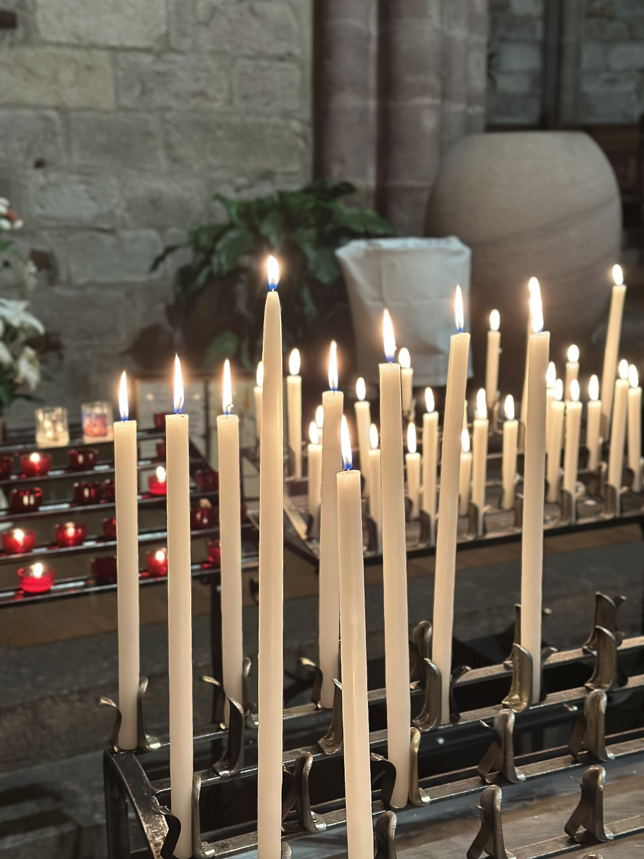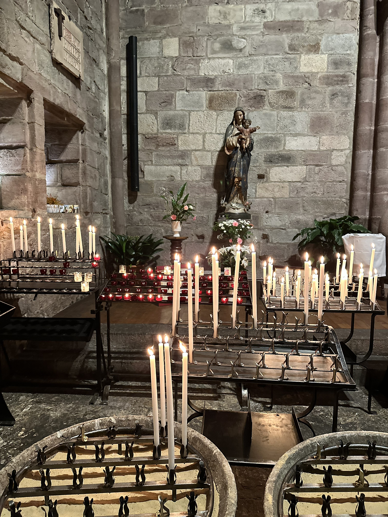 식사를 하고 장 베누아는 집으로, 나와 조세와 미셸린 셋은 우리들의 알베르게가 위치한 순례자 사무실 쪽으로 걸음을 옮겼다. 다행히 무거웠던 비도 많이 잦아들었고, 우리는 술과 많은 대화와 뿌듯했던 8일간의 동고동락했던 기억과 함께 프랑스 생장에서의 아쉬운 마지막 밤을 보내고 있었다. 언덕이 시작하는 마을 가운데 자리한 노트르담 성당이 보이자 조세가 제스처로 이곳에 잠깐 들어가자며 평소와 다르게 성큼성큼 앞장을 서서 들어가신다. 성당의 가장 앞쪽까지 들어간 우리는 봉헌촛대들을 마주했는데 조세가 헌금을 하고 새 초를 하나 가져오더니 “새로운 가족을 위해서(Pour une nouvelle famille)“라고 말하며 다 함께 불을 밝히자고 하셨다. 셋이 긴 촛대를 잡고 같이 불을 붙이고 적당한 자리를 찾아 우리의 초를 세워 놓았다. 서로의 마음이 자연스럽게 전해져 우리 셋 모두의 눈에는 이미 눈물이 한가득 고여있었다. 다 같이 손을 잡고 기도를 했다. 나는 ‘봉사를 위해 찾은 이곳에서 이렇게 사랑 많은 어른들을 만나게 해 주셔서 감사합니다. 앞으로 더 큰 사랑을 베풀고 살 수 있게 도와주세요.’라고 기도를 올렸다. 서로 안아주고 셋이 손을 꼭 붙잡고 알베르게 앞까지 천천히 걸어 나가는데 마음이 따뜻함으로 벅찼다. 아무 말 안 해도 서로에 대한 애정과 이 작은 인연이 준 깊은 행복에 그저 감사한 마음만이 넘쳤다.