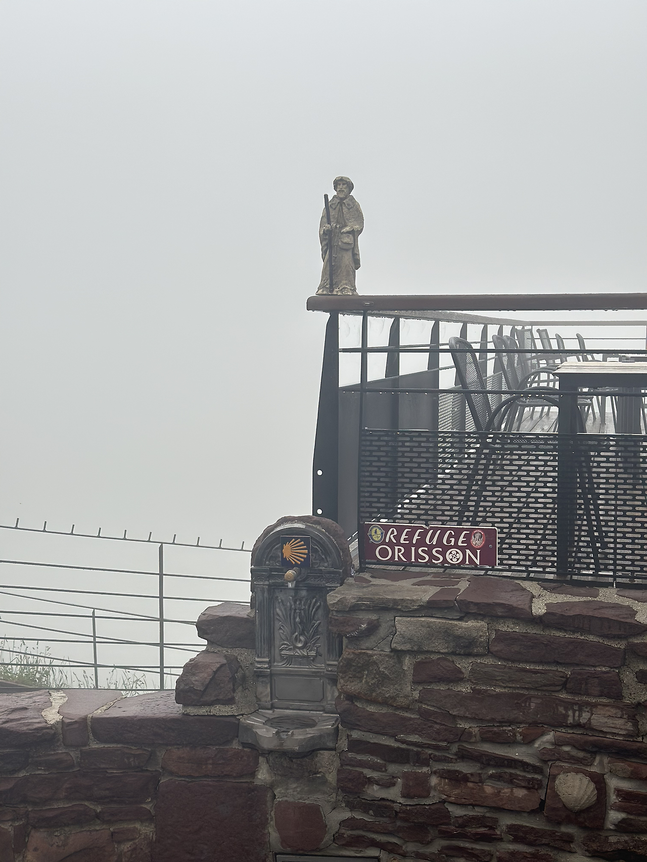 15분 정도 조심조심 운전해 도착한 오리손은 내가 기억하는 그대로였다. 다른 점이 하나 있다면 그때는 여유가 없었고 지금은 여유가 있다 정도랄까. 안으로 들어가니 순례자들이 가득한 게 여기저기 아는 얼굴들이 보인다. 바로 어제 크레덴셜, 순례자 여권을 발급해 드린 커플, 가족, 개개인들이다. 우리 바로 옆테이블에는 어제 정말 재밌게 이야기를 나눴던 미국에서 온 어머니와 아들 딸 세분이 계셨는데 너무 반갑다며 같이 사진 찍자고 해주셔서 우리 자원봉사자 팀과 함께 여러 장의 사진을 남기는 등 훈훈한 분위기에 우리 모두 기분이 좋아졌다. 4명이 받았던 순례자들이 각기 다르기에 서로 알아보는 사람들도 많았고, 우리끼리 커피를 마시며 테이블 건너 다른 순례자들과 이야기를 하고, 지나가는 순례자분들이 멈춰 서서 인사를 건네주시고, 언뜻 보면 오리손 산장의 카페 전체가 어제의 순례자 사무실을 그대로 옮겨 놓은 듯한 분위기인 게 참 재밌었다. 여유롭게 커피를 한 잔 하면서 지난날의 내 모습을 안 떠올릴 수가 없었는데 순례길을 시작하고 미지의 길에 대한(나한테는 미지의 길) 약간의 두려움과 의외로 힘들었던 첫 시작의 느낌, 아주 조금의 조급함까지 갖고 이곳을 지나갔던 게 바로 어제 같아서 피식 웃음이 났다. 이때 밖에 쏟아지기 시작한 엄청난 양의 비에 여러 순례자들이 쉴 새 없이 비를 피해 들어오는데 어우 이거 장화가 아니라면 그 어떤 등산화도 흠뻑 적실 무거운 양에 순례자들 걱정이 되기 시작했다. 여행도 순례길도 날씨가 다 하는 게 사실. 순례길 중 이렇게 비가 흠뻑 내리는 날은 정말 ‘내가 여기서 왜 이러고 있지?‘라는 의문이 들곤 했는데 그것도 첫날에 이런 비라니… 순례자들의 순례길 여정에 대한 사기만 꺽지 말아주길 간절히 바랄 뿐이다. 장 베누와가 어제 받았다던 영국의 십대 청년 세 명이 우리 테이블에 와서 공손 한듯한 말투지만 매우 화난 어조로 오늘 론세스바예스까지 갔는데 숙소가 없다면 어디까지 걸어가야 하냐며 물어왔다. 그리고 론세스바예스 넘어서라면 숙소를 확실히 구할 수 있을지 물어보는데 아… 이 친구들이 갑작스레 쏟아지는 비에 얼마나 당황했는지가 고스란히 느껴진다. 그렇게 우리의 여유로운 오리손에서의 커피 한잔은 거센 비와 함께 순례자 사무실 애프터 서비스 고객 상담 만족 센터가 되어버렸다. 이런저런 순례자들과 비에 대해 이야기하다가 오리손 산장을 나선다. 제발 비가 멈추길, 첫날 순례자들을 너무 시험에 들게 하지 않길 그저 바라고 또 바라지만 무심한 하늘은 우리가 생장에 도착해서도 비를 멈추지 않았다.