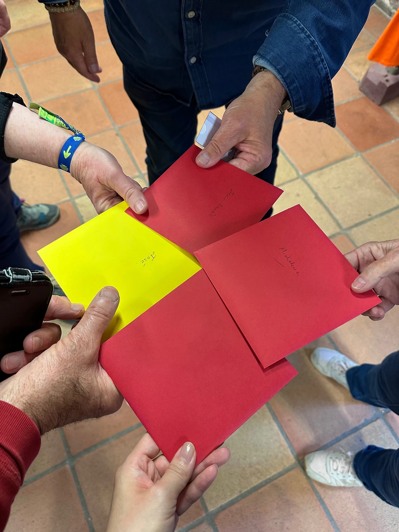드디어 12시 정오가 되고, 점심시간을 위해 순례자 사무실의 문이 닫히며 우리의 자원봉사 공식 일정은 모두 끝이 났다. 생장 피에드 포르 순례자 사무실을 운영하는 모니크, 장 루이스와 함께 기존의 자원봉사자 팀과 새로 도착한 자원봉사자 팀 모두가 함께하는 점심을 마지막으로 우린 작별 인사를 하게 되었다. 참 좋은 사람들과 일할 수 있어 행운이었다는 생각이 계속 들었다. 인사를 하고 헤어질 찰나 아이린이 우리 모두에게 줄 것이 있다며 카드를 한 장씩 나눠주는데 뭐야 뭐야 너무 따뜻한 선물이잖아. 늘 조용한 아이린은 남의 이야기도 참 잘 들어주고 평온한 힘이 있는 사람이라고만 생각했는데 이렇게 마지막에 감동을 줄 줄도 아는 멋진 아줌마였다. 다 같이 안고, 눈물이 날 것 같지만 참자 참자하고 돌아서려는 순간 조세 아저씨가 내게 다가와 폰으로 번역된 글을 나에게 보여주시는데 빵… 여기서 울음이 터져버렸다.