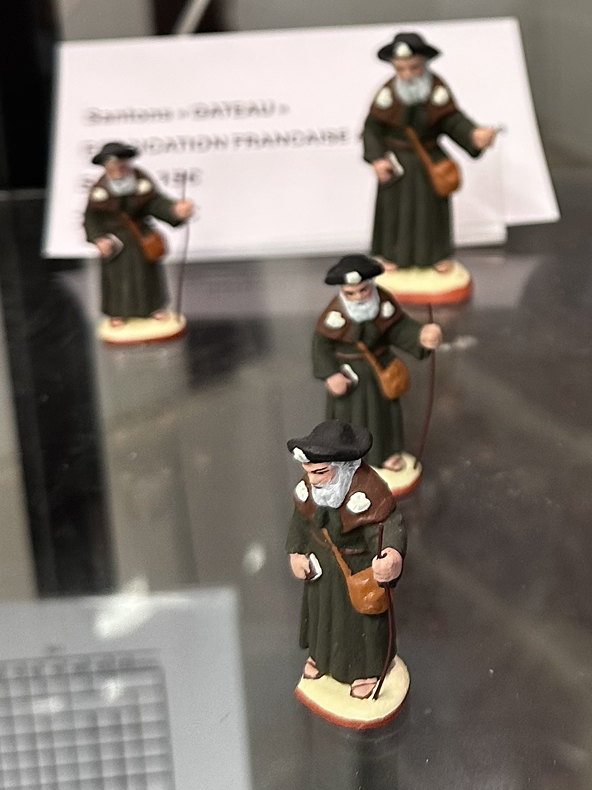 패치를 좋아하는 나에게 조금 아쉬운 부분이긴 했는데 딱 한 가지 디자인의 패치가 있다. 퀄리티는 좋다만 나는 배지로 만들어진 하늘색 바탕의 산티아고 성인 패치였으면 진짜 귀여웠겠다 싶었다. 이거 하나만 가격이 정확하게 기억이 안 나는데 아마도 마그넷과 비슷한 가격의 8유로 정도 되지 않았나 싶다. 마지막으로 소개할 기념품으로는 아주 작은 사이즈의 산티아고 성상이 있는데 두 가지 크기로 5cm짜리는 12유로(1만 9천 원), 7cm짜리는 15유로(2만 4천 원)이다. 이게 아주 작은데 도색도 잘되어있고 크기가 아기자기해 꾀나 마음에 들었던 기념품이었다. 그런데 손가락 크기 정도니 크기에 비해 가격대는 높은 편이라 솔직히 내가 봉사했던 8일 동안 이걸 사가신 분들은 없었다. 근데 산티아고까지 다 걸어가 보고, 산티아고 순례자 사무실에서 2주간 자원봉사하며 많은 기념품샵을 둘러본 결과 같은 걸 보지는 못했던 것 같다. 물론 산티아고 경험이 먼저고 그다음에 이곳 프랑스 생장에 왔기 때문에 내 기억이 100프로 맞다고는 할 수는 없는데 내 기억에 이거와 같았던 제품은 안 보였던 듯싶다. 이게 귀엽고 예쁘긴 하니 혹시 마음에 드신다면 애착템으로, 순례길을 걸을 친구로 하나 데려가시는 것도 좋을 것 같다. 일단 퀄리티가 좋아.