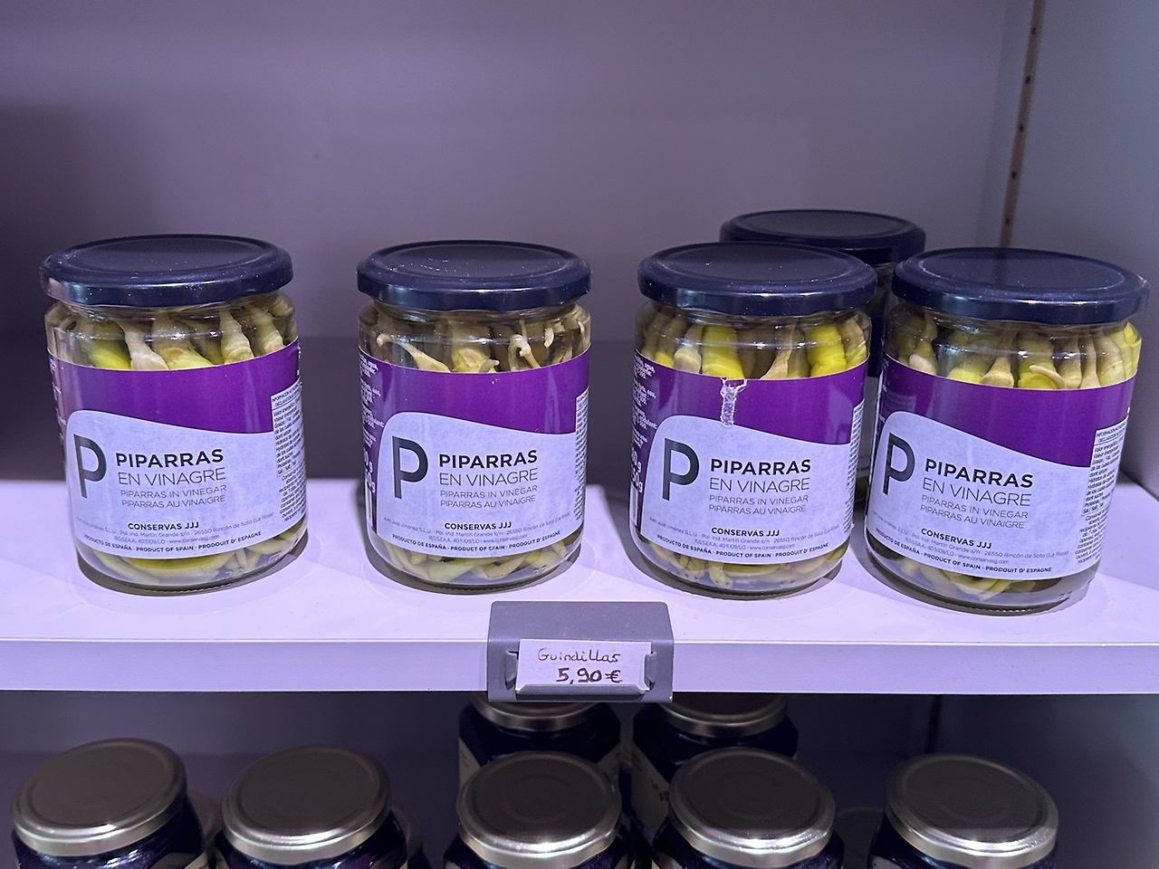 바스크 케이크 말고 내가 마음에 들어 했던 건 바로 이곳의 매콤한 맛을 책임지는 특산품 고추들. 너무 유명해서 기념품 자석들을 눈여겨보면 고추 모양의 바석들도 아주 많다는 걸 볼 수 있을 것이다. 바스크 지역은 매콤한 풍미를 즐기는 전통이 뚜렷해 두 가지 고추가 대표 특산품으로 있는데 먼저 피파라스(Piparras)는 스페인 바스크의 기푸스코아 지방, 특히 이바라에서 재배되는 길고 가느다란 풋고추로, 맵지 않고 부드러우며 보통 식초에 절여 타파스나 해산물과 곁들여 먹는 것이 특징이다. 이어서 프랑스 바스크를 대표하는 에스펠레트 고추(Piment d’Espelette)는 붉게 익힌 뒤 건조하거나 분말로 만들어 사용하는 향신료로, 은은한 매운맛과 깊은 향을 더해 고기, 생선, 치즈 등 다양한 요리에 활용되며 AOP 인증을 통해 국제적으로도 명성을 얻고 있다. 이처럼 바스크 지역은 풋고추부터 향신료까지 매콤한 맛을 다양하게 즐기는 문화가 이어져 내려온다고 한다. 그래서인지 고추가 가미된 전통 음식들이 많은지라 한국인들에게 이곳 바스크 지역의 음식은 낯설지가 않다.