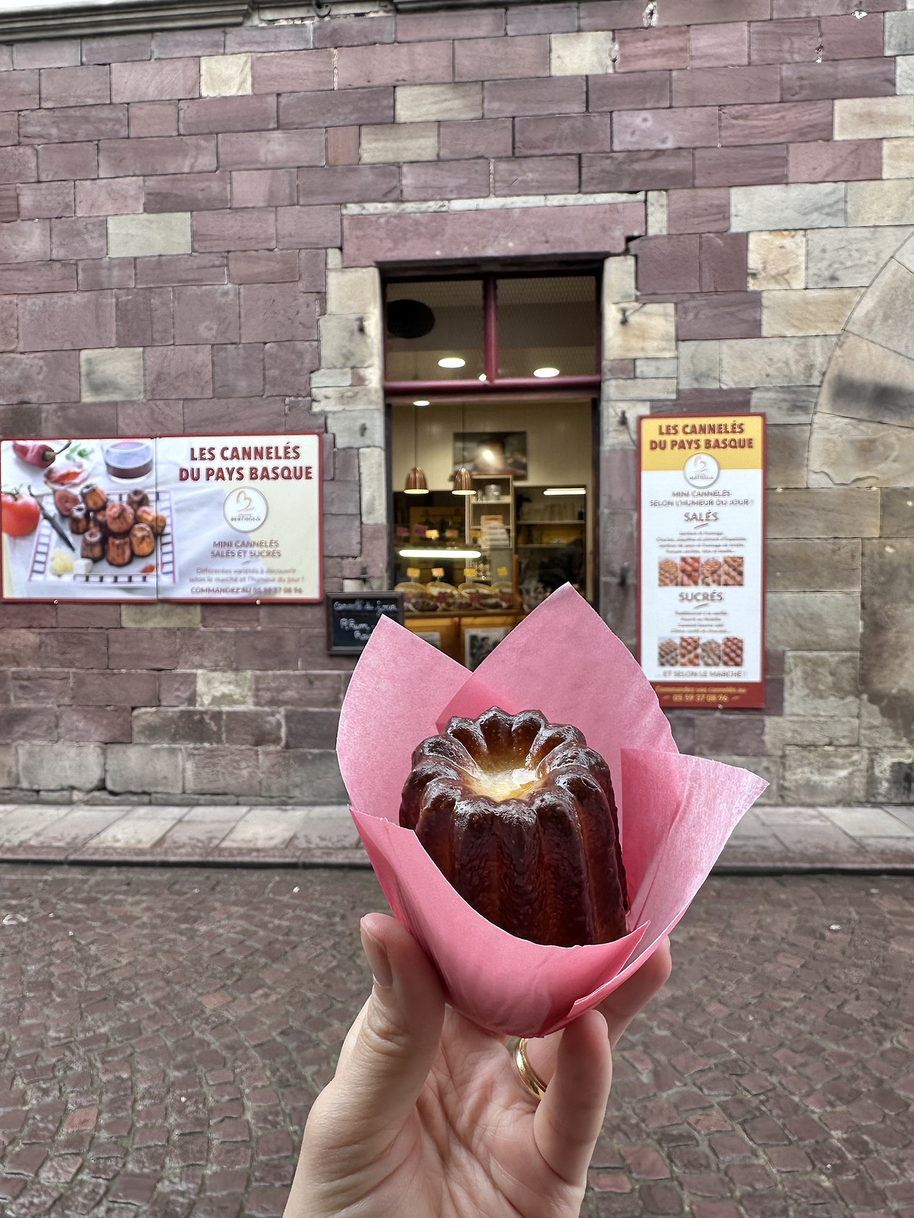 이제 슬슬 저녁에 먹을거리를 준비해야겠지? 든든한 점심을 먹었기에 저녁은 간단하게 L'étape gourmande에서 바게트 샌드위치를 준비하고, 그 뒤에 먹을 디저트로 Maison Berthold의 까눌레를 사두자. 샌드위치의 종류가 이미 많지만 메뉴 외 커스텀이 가능한 데다 가격도 합리적이니 안 먹을 이유가 없다. 일단 엄청 맛있고, 양도 많아서 이미 합격이란 말이지. 샌드위치를 만들 때 쓰는 바게트가 고소하고 바삭한 게 정말 맛있는데 가게 주인도 이 빵 정말 맛있지 않냐며 자부심을 갖고 있을 정도다. 빵을 사고 바로 앞에 위치한 까눌레 전문점에서 오리지널 까눌레 하나와 맛보고 싶은 미니 까눌레 몇 개를 골라 나오면 오늘의 저녁도 준비 끝! 간단하지만 맛은 풍부한 저녁과 디저트를 순식간에 확보해 놓은 셈이다. 생장의 거리를 거닐며 먹어도 되고, 숙소에 돌아와 까르푸에서 사 왔던 음식, 음료들과 함께해도 좋을 것 같다. 심플한 레드와인 한잔을 곁들인다면 왕이 부럽지 않은 프랑스의 맛도리 디너가 될 것이야.