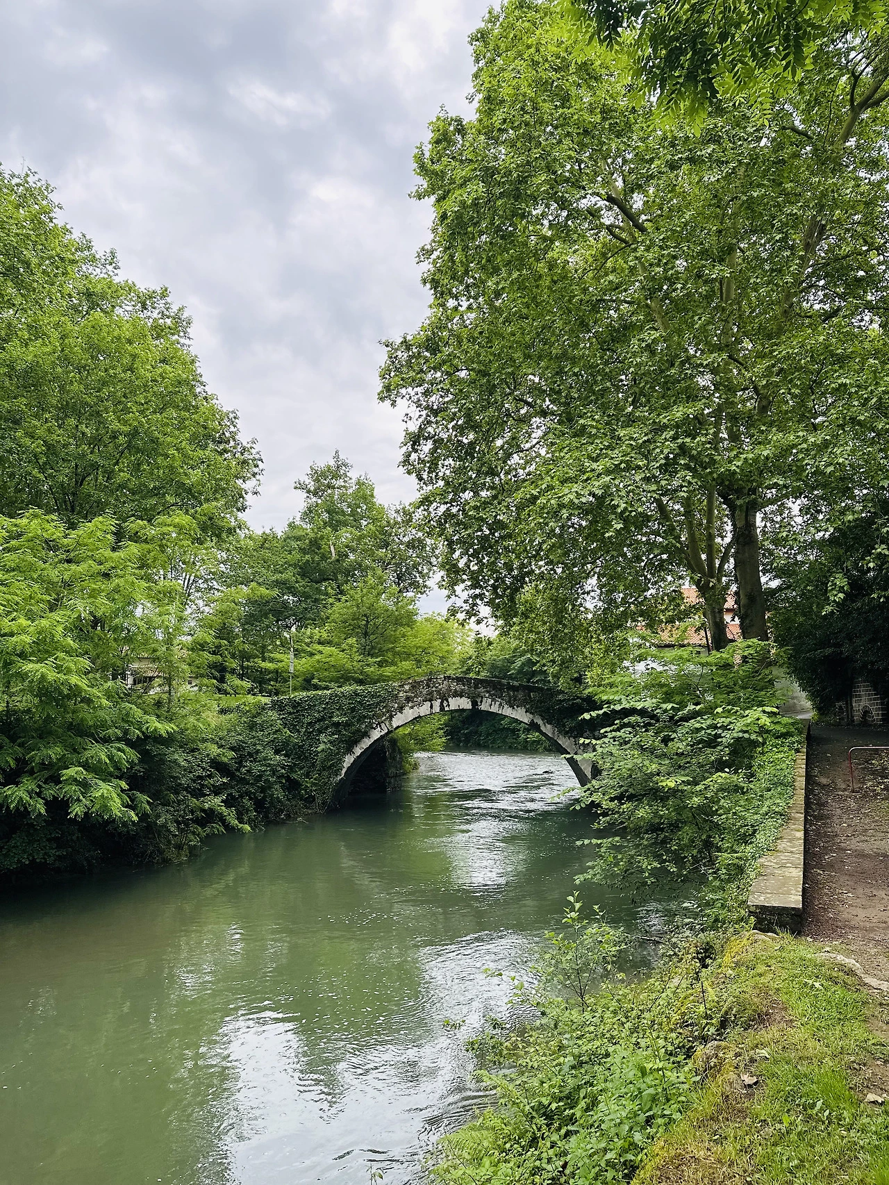 가벼운 대화와 함께 든든하게 배를 채웠다면 근처 강가 Pont d'Eyheraberry를 산책해 보자. 노트르담 성당을 돌아 다리 옆으로 펼쳐지는 작은 산책길인데 아침의 생장은 정말 조용해서 새소리와 물소리만 들릴 정도로 자연을 제대로 느낄 수 있다. 한강변처럼 커다랗고 길지는 않지만 왕복하면 30분 정도의 짧지만 정말 예쁜, 꼭 도시가 아닌 숲 속에 있는 듯한 인상을 주는 산책길이기에 매우 추천한다. 산책 후 기념품들을 구경해 본다. 순례자라고 하면 순례길에 필요한 용품이나 순례길 관련 자석 등 보고 살게 많겠지만 오늘만큼은 바스크와 관련된 기념품들을 눈여겨보자. 피레네산맥 지역의 양모로 만든 바스크문화에서 빠질 수 없는 베레모를 구경해 보고 직접 착용도 해볼 수 있다. 유럽 아주머니들이 좋아한다는 바스크 직물 특산품인 수건들과 행주들도 꼭 눈여겨봐야 할 아이템. 대부분의 상품에 바스크 전통 무늬나 바스크에서 유명한 양, 고추 등의 자수들이 들어가 있어 고르는 재미도 있다. 이렇게 아침은 생장은 어떻게 생긴 곳인가를 천천히 눈에 담는 시간으로 생각하면 좋을 것 같다. 독특한 집모양들과 조용한 사람들, 그리고 아주 이른 아침부터 정오까지 각각의 시간에 순례길을 시작하며 지나쳐가는 많은 순례자들을 보면 ‘아, 내가 프랑스길의 시작인 생장에 와있구나.‘를 절로 느낄 것이다.