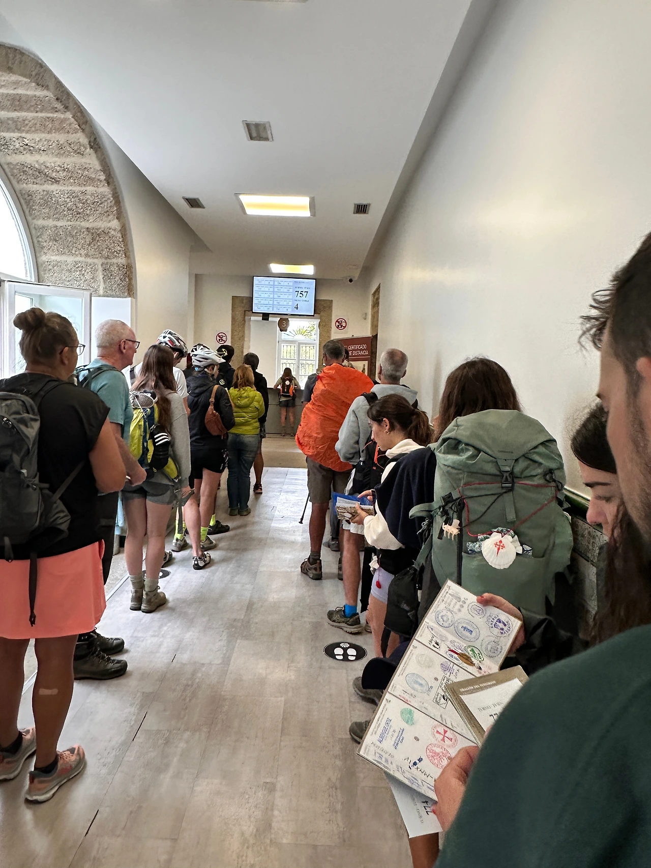 생장과 산티아고 이 두 곳에서 하는 일의 특성이 조금 다르기에 순례자들의 느낌과 반응도 참 다르다. 생장의 순례자 사무실은 순례길을 시작하는 곳이고 대부분의 순례자가 경험이 없기에 첫행보에 대한 긴장감과 설렘을 느낄 수 있는 반면 산티아고 순례자 사무실에서는 순례길을 끝내고 오신 순례자분들의 안도와 희열을 공유하는 분위기다. 생장에서는 가능한 정보를 전달하려고 10분 정도의 긴 시간 동안 대화를 하는 반면 산티아고에서는 순례길이 어땠었는지 감상을 나누는 대화를 하게 된다는 것도 다른 점이지.
