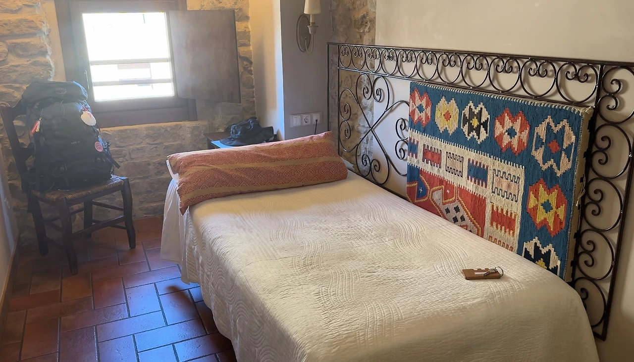 오늘은 산티아고 순례길을 걸은 지 4일 차에 드디어 호텔에서 개인실을 쓰는 날이라 걸음이 더 가벼웠던 것 같다. 내가 숙소비로 200만 원을 넘게 쓴 이유가 이제 조금씩 설명이 가능해지기 시작하는 날이다. 7만 3천 원(52유로)을 주고 El cerco라는 곳에 머물렀는데 일단 로비가 모던해서 느낌이 좋았다. 여러 명이 같이 묵는 숙소가 아니다 보니 사람들이 북적이지도 않고 나만 혼자 조용히 체크인을 하고 룸키를 받아 올라갔다. 생각한 것보다 방은 작았고 침대도 정말 딱 1인용 침대였지만 들어가자마자 에어컨을 켜고 누우니 세상이 다 내 것 같았다. 개인방, 개인욕실에 샤워젤, 샴푸도 있고 수건까지 있다니 그동안 비행을 하며 정말 좋다는 호텔에서 수많은 레이오버를 했지만 오늘은 최소한의 것들만을 갖춘 이곳이 세상에서 제일 멋진 곳으로 느껴진다. 짐을 푸는 것도 소음과 공간 신경 쓰지 않고 다 열어 널부러두고, 샤워도 개인욕실에서 신경 쓸 것 없이 오래 하고, 소리 죽일 것 없이 마음껏 통화도 하니 여기가 천국이구나 싶다. 3일 동안 다른 사람들과 시설을 공유하며 써오던 중 4일 차에 개인실이라, 매우 적절한 시점인 것 같다. 오늘은 제대로 긴장을 풀고 편하게 잘 쉬어갈 수 있을 것 같다.
