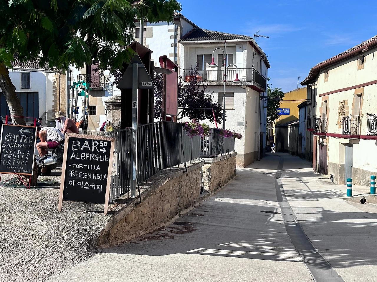 알고 보니 우리보다 걸음이 빨러 늘 앞서 가시는 선생님이 이곳에서 식사를 하고 지나가시며 이 사진 속의 남매가 오면 맛있는 또르띠아와 아이스 아메리카노를 주라고 미리 계산하신 것. 크아~ 너무나 스윗하신 제스처에 우린 바로 녹았다. 드라마 같이 어찌 우리가 여기 멈출 줄 아시고 계산을 해두셨단 말인가! 바로 당장 사진을 찍어서 선생님께 잘 먹겠습니다~하고 문자를 보냈다. 정말 이렇게 스윗한 서프라이즈를 산티아고 순례길 위에서 받을 줄 몰랐는데 정말 심쿵했다. 게다가 여기 또르띠아 정말 맛있는 게 나중에 두고두고 기억에 날 맛이었다. 한국인 사이 말고도 원체 평이 좋은지 그새 북적북적 해진다. 다른 분들도 앉을 기회를 주기 위해 서둘러 먹고 다시 우리의 길을 재촉해 오늘의 종착지 에스테야로 들어왔다.