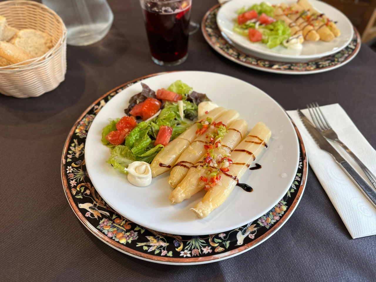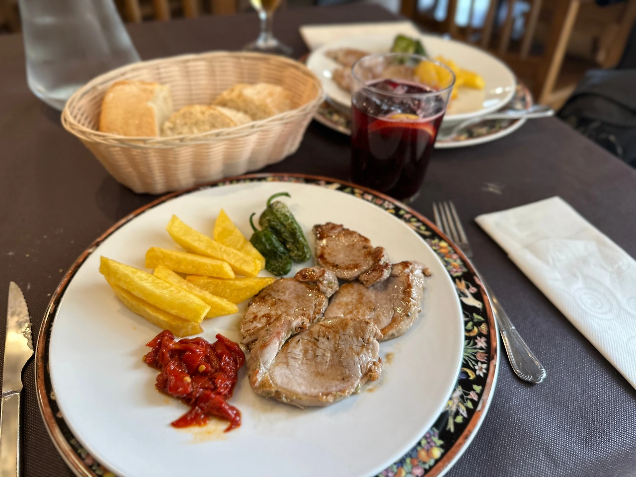 보기에도 먹기에도 만족도 별 다섯 개의 완벽한 식사였다. 18유로 (2만 5천 원)에 3 코스 요리였는데 일단 에피타이저로 화이트 아스파라거스가 나왔고 메인으로는 소고기 안심구이에 감자튀김과 함께 고추랑 피망볶음도 나왔다. 디저트로는 맛있는 플란(계란푸딩). 보통 스페인의 점심 메뉴에 와인이 포함된 거는 알고 있었지만 이 가게는 원하는 알콜 드링크 선택이 가능해 나는 띤또 데 베라노, 메구미는 원하는 맥주를 마실 수 있었다. 작은 차이지만 많은 샵들이 그냥 정해진 와인만 가져다주는데 비해 긴 길을 걷고 원하는 종류의 술로 갈증을 해소하는 캬~하는 순간은 꽤나 소중하다.