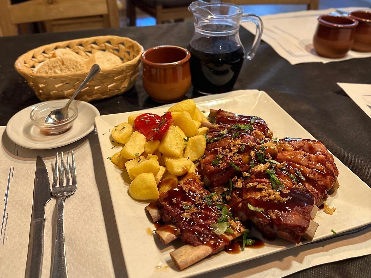 오늘의 점심과 저녁은 둘 다 E Chiringuito del Camino에서 먹었는데 무려 구글 평점 4.8의 기차게 맛있고 푸짐한 폭립으로 유명하다. 한국어 메뉴판도 준비가 되어있을 정도로 한국인 순례자들 사이에서 나름 유명한데 내가 한국인인걸 알아보시고 너무 유창한 발음으로 “안녕하세요"라고 인사를 건네셔서 벌써부터 기분이 좋아진다. 레드와인을 마시며 폭립을 기다리는데 고추장 원하냐고, 아주 조금이나마 가져다주시는 게 참 귀여우시다. 세 덩어리나 되는 폭립이 진짜 진짜 맛있어서 인생 폭립 1위에 등극시켰다. 뭐랄까, 아웃백 같은 데서 먹는 레스토랑의 판박힌 폭립이 아니라 더 튼실한 게 먹을 게 많고, 발라진 소스도 특유의 'BBQ 소스다!!'하고 소리치지 않는 깊고 점잖은 맛이랄까. 정말 맛있었다. 이곳 주인분이 한국을 좋아하셔서 올해 한국 가신다던데 좋은 음식 많이 드시고 내가 지금 여기서 행복했던 만큼 즐기실 수 있으시길 바란다.