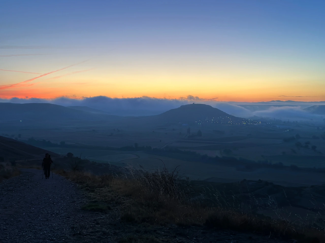 한 시간 정도를 걸어 올라가니 정상인 것 같았다. 뒤를 돌아보는데 오늘은 통트는 모습이 너무 예뻐 그냥 자리를 틀고 앉아 해가 다 뜰 때까지 있고 싶다. 늘 평지에서 지켜보던 것과 달리 위에서 내려다보는 세상은 비현실적이게 몽환적이다. 한 커플이 앉아서 동트는 모습을 보며 아침을 먹는데 부럽다. 나도 이런 뷰가 존재하는 걸 미리 알았다면 어제 샌드위치라도 하나 사둘걸. 감탄 나오는 카스트로헤리츠 마을을 넋 놓고 보다가 안 떨어지는 발을 재촉해 본다. 다음을 위해 꼭 기억해야지!! 카스트로헤리츠에서 출발해 1시간 지점의 정상에서 동트는 걸 보며 아침 먹기! 커피믹스 한잔에 삶은 달걀 한 개라도 좋으니 이 뷰를 예약한 사람처럼 앉아서 실컷 즐기리라!