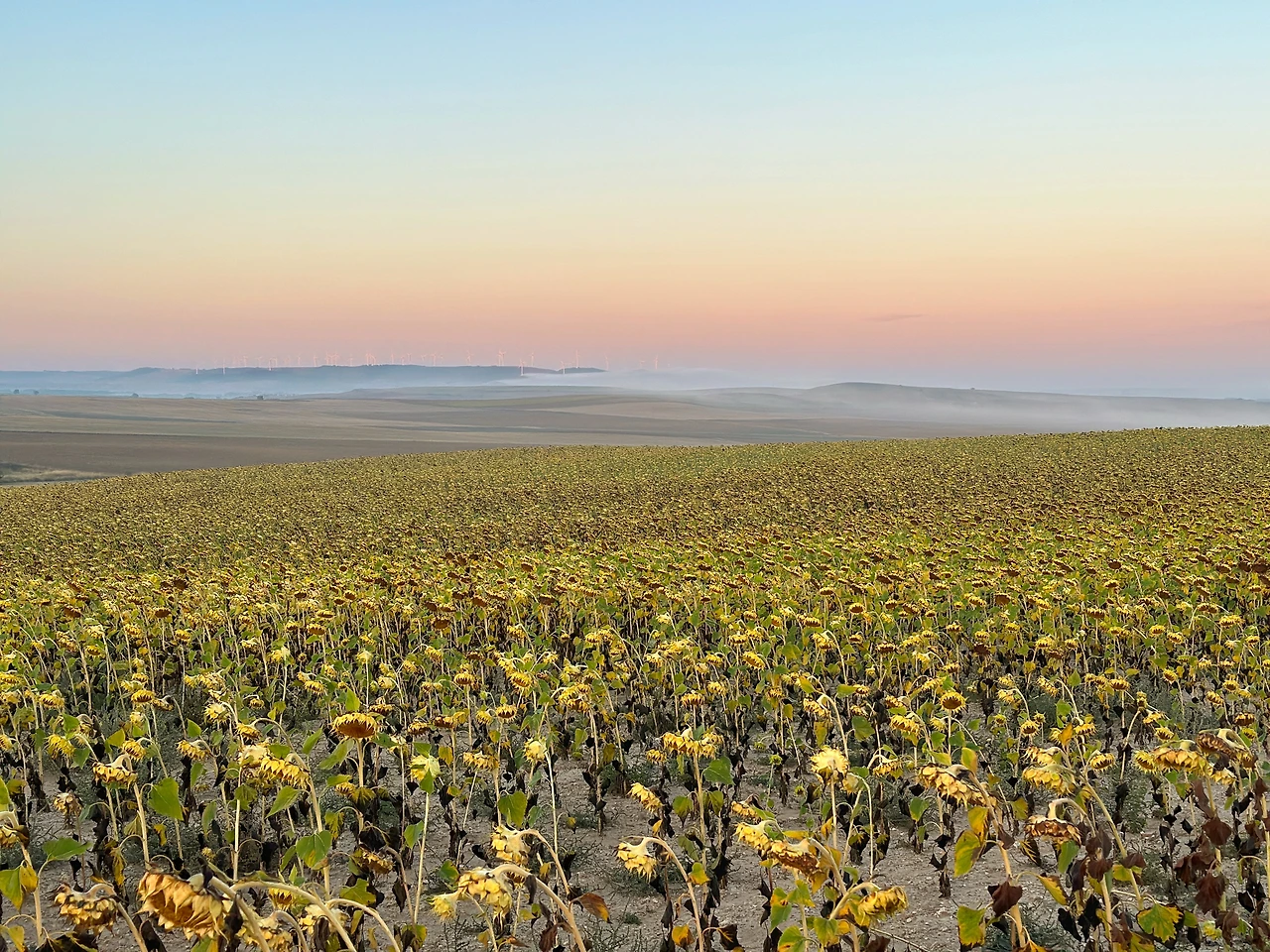 올해 스페인의 여름이 가뭄에 폭염이었기에 그런지 몰라도 해바라기들이 하나같이 자라다가 만듯해 보인다. 이 꽃들이 잘 자라서 만개했었다면 그 풍경은 또 어떠했을까 궁금해진다. 지금은 시들었어도 나보다 더 더운 6월, 7월, 8월에 이 길을 땀 흘리며 걸었을 순례자들에겐 힘이 되었을 활짝 핀 예쁜 풍경이었길 바란다.