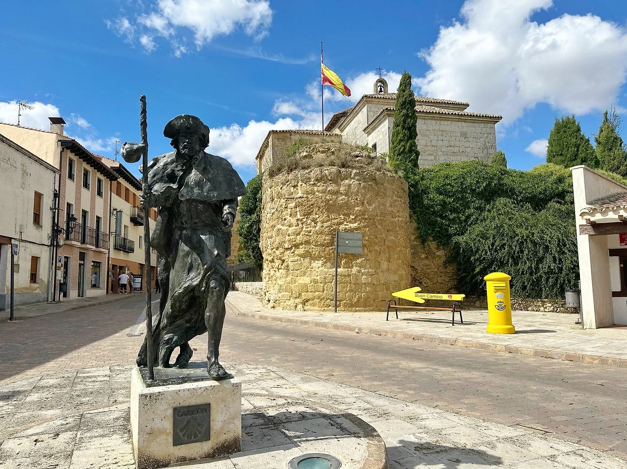 오늘의 도시 까리온 데 레스 콘데스는 나름 소도시 중에서도 조금 모던하게 잘 발달된 것 같아서 초입부터 조금 설레었다. 부르고스만큼은 아니지만 다른 도시에 비해 먹을 곳도 많고, 기념품 샵도 많고, 이곳저곳에 사진을 찍을만한 스폿들도 준비되어 있는게 나를 설레게 했다. 날씨가 유난히 좋은 날에 조금 걸어서 체력이 남아도는 기분이라 씻지도 않고 가방만 내려놓은 뒤 마을을 둘러보러 나갔다. 걸은지 얼마 안 된 그때 교회 앞에서 누군가 내 이름을 부른다. “oo 씨!”