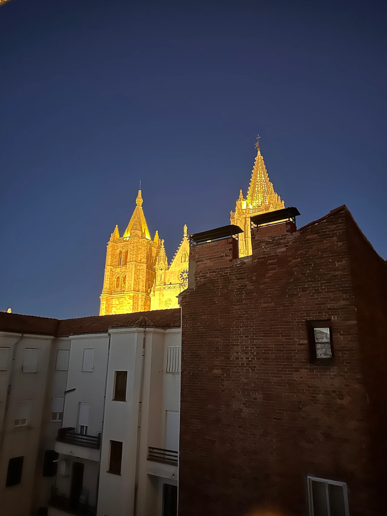 언뜻 창 밖을 보니 레온 성당에 불이 들어온 모습이 보였다. 그 주황 불빛이 너무 예뻐서 후다닥 혼자 보러 내려갔다. 야경 중에서 헝가리 부다페스트의 국회의사당의 모습을 가장 좋아하는데 레온 대성당도 그 "와~" 하는 느낌이 들었다. 더 좋았던 건 부다페스트의 의사당은 강을 건너 보는데 이 레온 대성당은 바로 땅 위에 있어 나와 연결된 있다는 것, 앞으로 걸어가 이 예쁜 빛에 쌓인 거대한 성당을 손으로 만질 수도 있다는 사실에 더 신비로웠다. 언니가 피로하지만 않았다면 깨워서 내려와 같이 있고 싶었다. 이걸 같이 못보다니 너무 아쉽지만 만 하루 반을 이동한 언니가 좋은 컨디션으로 도착한 것만으로도 감사해야지 싶어 내버려뒀다. 언니는 2019년에 우리가 부다페스트에서 밤에 의사당을 보며 토카이 한 잔에 살라미와 치즈를 먹었던 기억을 참 좋아한다. 지금 이 레온 대성당의 야경을 함께 보며 커피라도 한잔 한다면 우리가 가진 야경에 관련된 추억 하나를 더 만들 수도 있을 텐데 말이야... 내일 새벽에 우리가 출발할 때 레온 대성당의 불빛이 이대로 켜져 있다면 너무 행복할 것 같다. 그렇게 된다면 언니랑 5분 정도는 가만히 그 앞에 앉아 지금 내가느끼는 이 대성당의 아름다움을 나누고 싶다. 제발 그럴 수 있길 바란다.