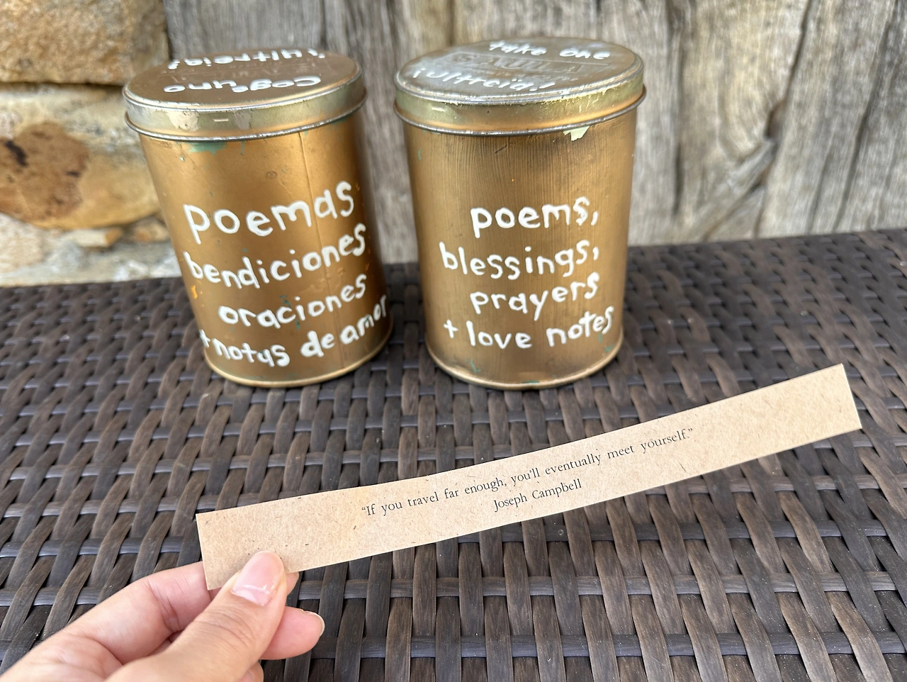 언니와 대낯의 술파티를 한 다음 다시 힘을 내어 걷기 시작했다. 둘 다 술이 약한건 아닌데 이 상그리아가 취기가 없진 않다. 날이 더워 그런지 몸도 따땃하니 취기가 더 빨리 오른 것 같다. 막 걸음을 시작하고 언덕을 오르기 시작하자마자 왼쪽 코너에 작은 틴 캔 두 개가 놓여 있는걸 발견했다.