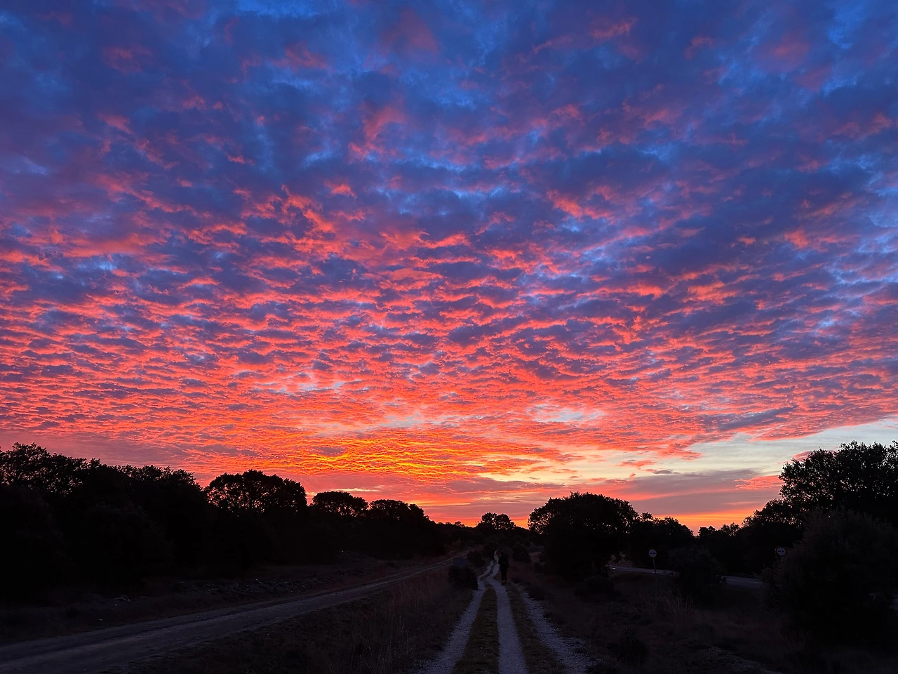 일출이 너무 예뻐서 길을 걷다가 뒤를 참 많이 돌아보았다. 파스텔 칼라로 시작한 불타는 일출은 나중에 거의 형광색에 가까운 밝은 빛으로 하늘을 가득 채웠고, 멋진 구름들까지 더해 꼭 그림을 보는 듯했다. 이렇게 바다같이 넓고 끝도 없는 하늘은 이탈리아에서도 아닌 스페인에서만 볼 수 있는 건가? 뻥 뚫린 하늘을 매일매일 진심을 다해 눈과 마음에 열심히 담으려 하고 있다. 정말 예쁘다. 내가 하늘을 보고 하늘이 꼭 바다 같다 느꼈던 건 모로코 카사블랑카가 유일했다. 하지만 스페인의 하늘은 모로코처럼 넓지만 더 따뜻하다. 어쩜 하늘도 그 나라마다 특징이 있는지 신기할 나름이다.
