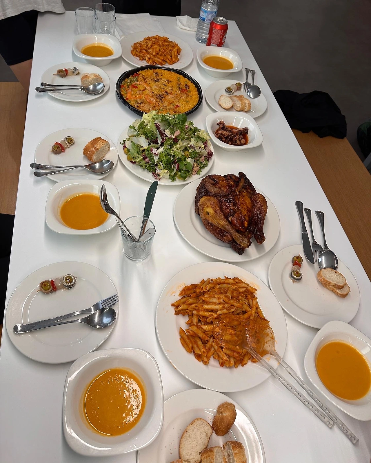 오늘 저녁은 나와 언니, 메구미와 J씨, H양과 함께 다섯 명이서 알베르게의 큰 식당에서 자리를 잡고 센터에서 장봐온 음식들로 파티를 했다. 샐러드에 통닭구이에 파스타, 빠에야까지 이렇게 푸짐하게 저녁을 먹은 지가 언제인가 싶다. 내일부터 우리가 가는 목적지가 달라지기에 오늘이 마지막일 거다 싶어 만든 자리다. 모두가 함께라 너무 좋았다.