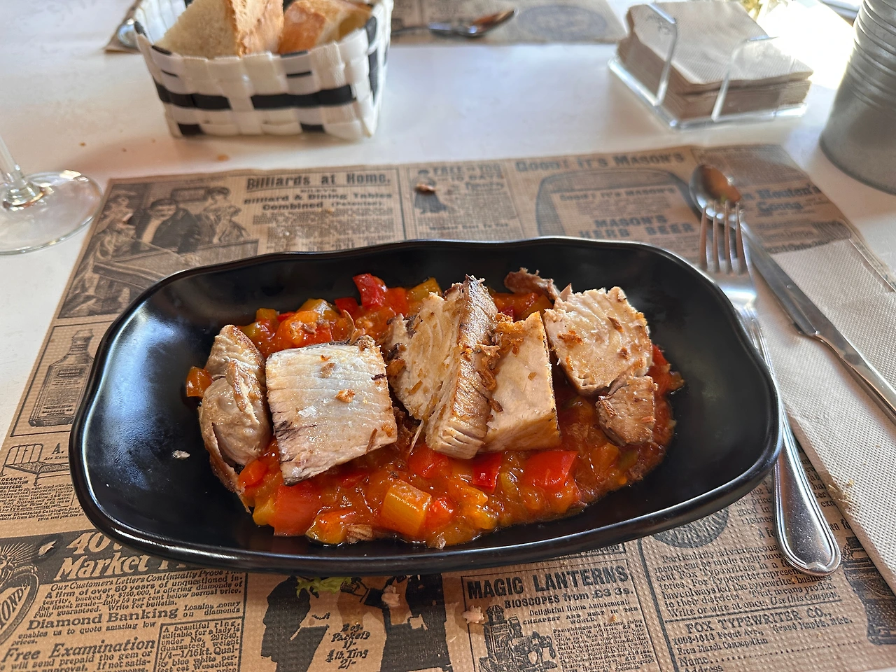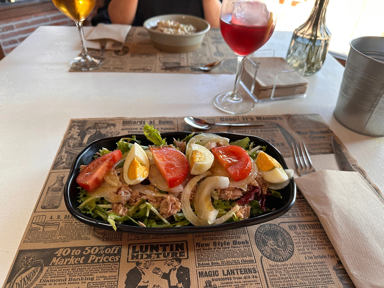 내가 정말 피곤했는지 메뉴를 제대로 안 봐서 첫 번째 코스를 참치 샐러드를 시켜 아주 맛있게 먹고는 두 번째 코스로 라따뚜이를 시켰는데 그게 참치 라따뚜이었다. 아 웃겨 정말. 평소 라따뚜이를 좋아해서 뭔지 제대로 읽지도 않고 어? 라따뚜이다! 하고 반자동으로 시켜버림. 그래도 이곳 레스토랑은 내가 시킨 음료 띤또 데 베라노와 메구미의 맥주가 세트 메뉴의 음료에 포함되어 있고 심지어 디저트도 제대로 된 케이크에 커피까지 포함되어 아이스아메리카조까지 시원하게 잘 마셔주고 나왔다. 레스토랑 벽면에 셰프 사진이 도배되어 있는 걸로 봐서 음식 경연대회 같은 것도 다니시는 요리에 진심인 레스토랑 같았다. 메뉴의 참신함이나 세련됨이 일반 레스토랑보다는 살짝 남달랐다. 우리가 아이스 아메리카노를 시키니 가져다주시면서