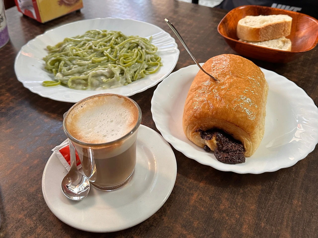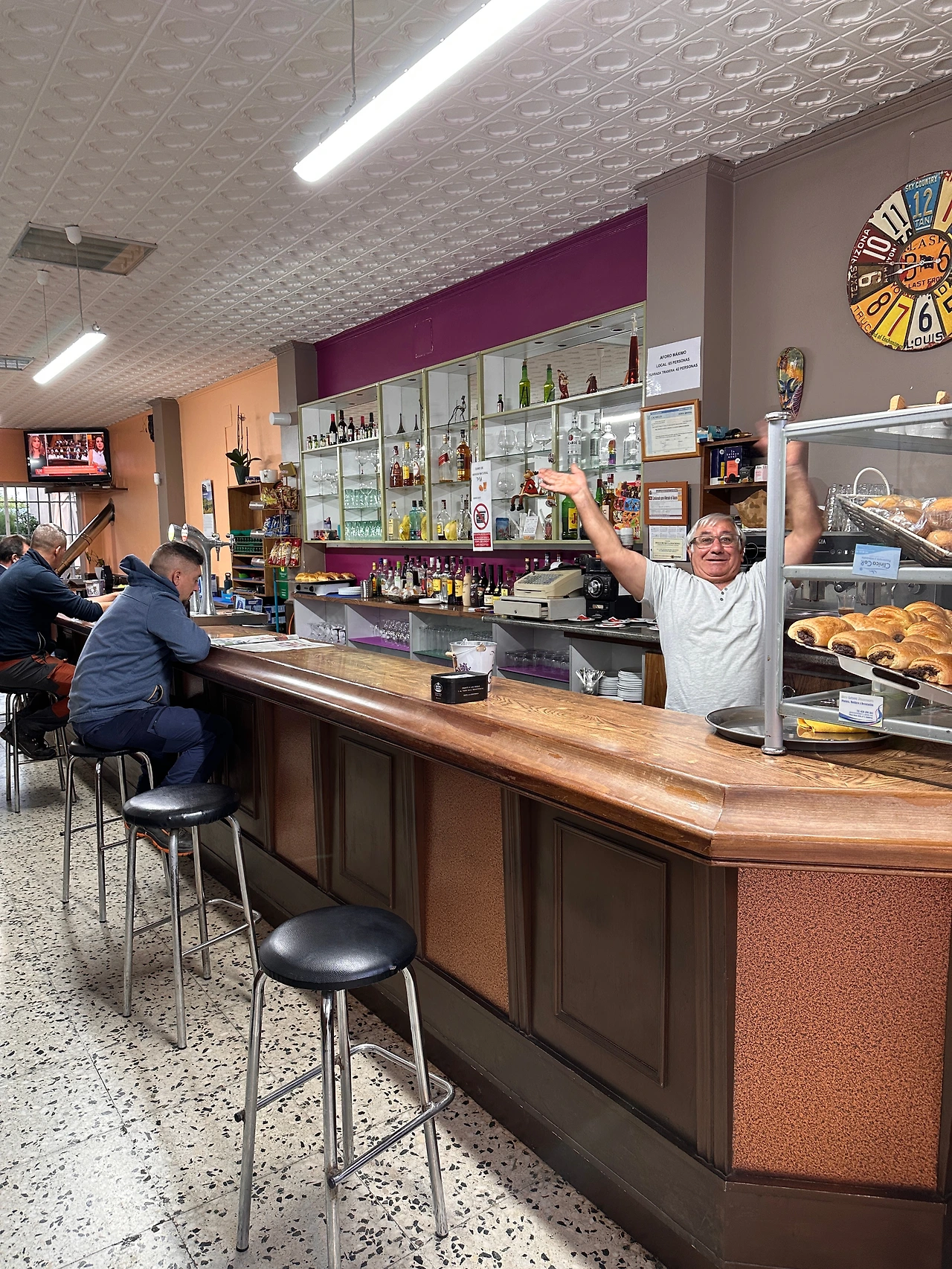 해가 뜨기 시작할 8시 남짓까지 참 길이 편했다. 안개가 자욱한 신기한 광경을 보며 언니와 정말 즐겁게 걸었다. 이렇게만 걸으면 오늘 34km 걸을만하겠는데? 생각을 할 정도였다. 8시 반쯤 되었을까, 작은 동네에 사람들이 모여있는 카페를 발견하고 아침을 하러 들어갔다. 로컬 사람들이 꾀나 많이 들리는 동네 맛집 바이브가 있는 곳이다. 나는 나폴리타나에 코르타도 한잔 마실까 해서 들린건데 언니는 벽에 붙은 메뉴를 보고 파스타를 시키려 한다. 아니 아침 8시 반이라고, 저거 메뉴에 있어도 아마 점심이나 저녁때나 파는 걸꺼고, 아침에 식당에서 누가 불을 켜고 요리하겠냐고....