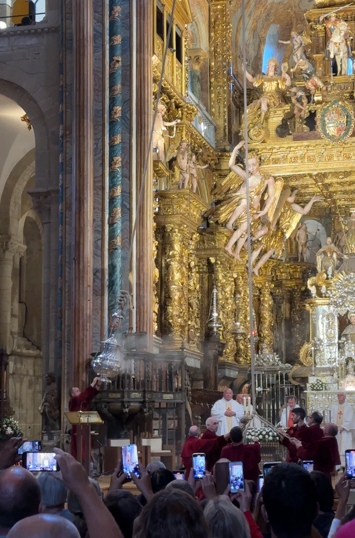 예배의 마지막 부분에 드디어 대형 향로 보타푸메이로(Botafumeiro)가 올라갔다. 세계에서 가장 거대한 향로로 알려진 보타푸메이로는 그 무게가 무려 53kg이고 20m의 긴 줄에 달려 아주 높이 올라가기 때문에 여러 명의 사제님들이 함께 힘을 모아 움직이게 하신다. 제대의 측면으로 왼쪽 오른쪽으로 움직이기 때문에 정면에 앉은 사람들은 향로가 움직이는 그 광경을 제대로 볼 수 있고, 측면에 앉은 사람들은 향로가 머리 위로 지나가며 축복의 느낌을 제대로 받지 않을까 한다. 축일 미사 때 기부금이 500유로 정도가 되어야 향로가 올라간다는 소리를 어디에서 들은 적이 있는데 가끔 기부금이 안모일 때는 향로가 안 올라가기도 해서 산티아고를 두어 번 오신 분들도 예배 때 이 향로를 못 보셨다는 분들도 있었다. 와 이거 얼마나 행운인 거니. 언니와 나의 산티아고 여정이 이렇게 보타푸메이로도 볼 수 있었던 뜻깊은 미사와 함께 마무리하는구나. 정말 마음 깊이 감사했다.
