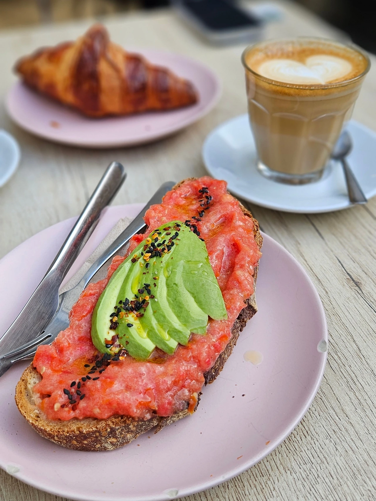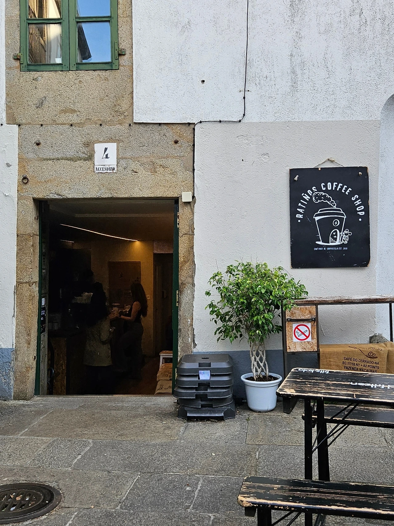 늘 일어난 뒤 20분 안에 쓱쓱 준비하고 자리를 털고 길을 나섰던 지난 한 달과 다르게 오늘은 느리장 부리며 천천히 준비하고 9시쯤이 다 되고 나서야 숙소를 나섰다. 하루아침에 벌써 일반인 모드로 변한 속세 버전의 내 모습이 우습다. 순례자든 일반일이든 일단 아침은 잘 먹어줘야지. 오늘은 커피가 아주 맛있다는 좋은 평점의 작은 카페 Ratinos에 갔다. 안과 밖 대여섯 개의 테이블이 전부인 아담한 장소지만 플랫화이트를 정말 잘 뽑아서 크로와상, 아보카도 토스트에 아주 맛있게 하루를 시작한다.