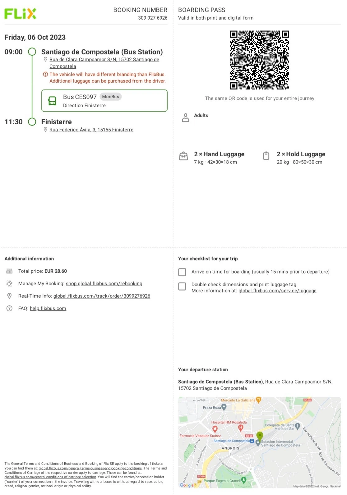 실은 오늘 피스테라에 가는 9시 버스를 타야 했다. 이미 언니와 몇 달 전에 산티아고행을 결정했을 때 완주 다음날엔 꼭 피스테라를 가기로 하고 버스까지 다 예매를 해둔 상태. 콜럼버스가 신대륙을 발견하기 전까지 유럽사람들이 세상의 끝이라고 믿었던 곳이기도 하고, 0km가 적혀있는 비석을 눈으로 보고싶긴 했다. 하지만 어제 산티아고에 도착한 후 둘이 깊게 이야기를 해본 후 피스테라 가는 일정을 취소하기로 했다. 물론 버스비는 그렇게 날아가지만 아직 산티아고를 뒤로하고 차 안에서 왕복 5시간을 소비하며 여기를 떠나 어딘가를 다녀올 마음의 준비가 안된듯했다.