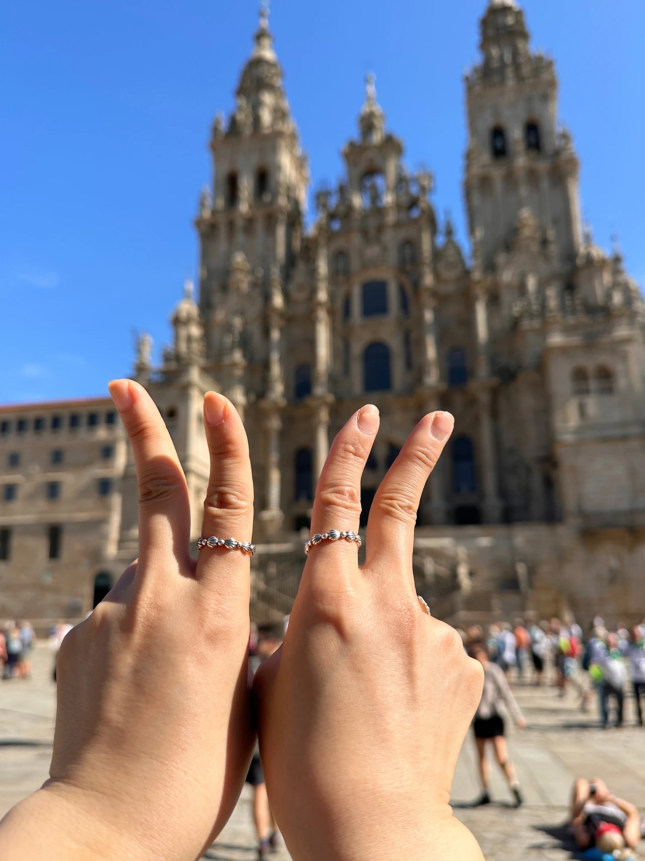 식사를 마치고 총총걸음으로 언니와 기념품샵들을 하나둘 꼼꼼하게 둘러보며 낮시간을 보냈다. 오늘은 언니와 세트로 조개 묵주 모양의 반지를 하나씩 사서 맞췄는데 이상하게 난 옛날부터 언니가 고른게 늘 더 이뻐 보인다 말이야... 언니가 고른 반지를 옆에서 기웃거리다 결국엔 똑같은거 나도 하나 사달라고 해서 세트 반지가 되었다는 사실. 이것 말고도 이제 지금 떠나면 언제 올지 모르니 열쇠고리니, 파우치니 사고 싶었던 기념품들을 한가득 사서 돌아왔다. 언니의 말로는 지난 9년간 내가 왜 그때 이것저것 안 사 왔을까 그런 아쉬운 생각이 머리에 오랫동안 남았다고 한다. 원래 남들보다도 이런 여행 여정에 대한 기념품을 남기는 걸 훨씬 좋아하는 나이기에 언니말을 믿고 조금 넘치더라도 이것저것 많이 담아왔는데 참 돈을 쓰고도 마음은 배불렀다. 이건 단순 여행이 아닌 내 일생에 한번뿐일 수도 있는 순례길 완주를 기념하는 거니 뭘 해도 아쉬움을 뒤로 남기고 싶지 않았던 것 같다.