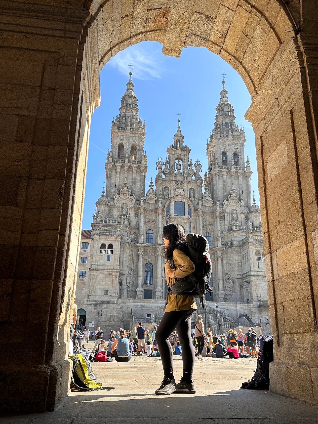 어제의 다소 구름 꼈던 산티아고와 달리 오늘은 해가 맑게 떠서 온 세상이 더 환하고 아름답다. 언니와 어제 좀 아쉬웠던 사진을 더 찍자! 해서 가방을 들고 다시금 산티아고 대성당 앞에 섰는데 크~ 해가 눈이 부실 정도로 예쁘다. 어제는 도착해서 이리저리 정신이 없어 눈치도 못 채다가 오늘 산티아고 대성당 앞에 있는 건물의 아치에서 사진을 찍어야한다는게 생각났다! 산티아고 순례길을 걷기 전에 수많은 리뷰와 도착 사진들을 보며 특히나 아치가 있는 건물에서 산티아고 대성당을 담은 사진은 정말 꼭 찍어야지 생각을 했었는데 와! 드디어 오늘 나도 찍는구나 하는 생각에 너무 설레었다. 어제는 왜 기억이 안났었는지 정말 긴장 많이 했었나봐. 산티아고에 도착하고 나서도 완주증, 향로미사, 숙소에 짐 풀기, 밥 먹기 그냥 뭔가 정신없이 후다닥 지나갔으니 그럴만도 하다. 오늘 피스테라 안간거 너무 잘했다고 생각이 든다. 오늘 이렇게 여유 있게 둘러보는 산티아고는 정말 어제와 너무 다르다. 오늘이 더 행복했다. 이제야 좀 온전하게 산티아고라는 도시 자체를 좀 즐길 수 있다고 할까. 나의 마음이 한결 가벼워짐과 동시에 더 집중해서 이곳을 제대로 마음에 담을 정신이 이제야 좀 생긴 것 같았다.