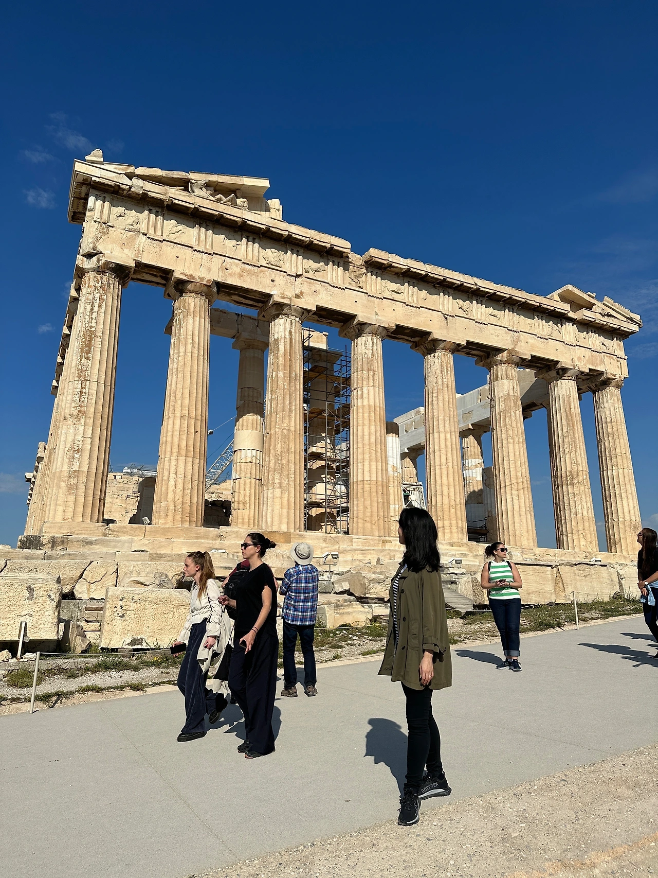 그래도 가기 전에 몇 번은 테스트를 해야 할 것 같아서 9월 산티아고를 앞두고 갔던 4월의 아테네, 5월의 파리 여행에 신고 갔는데 나름 성공적이었다, 아테네에서는 파르테논 신전을 올라가는 돌계단들과 올라가서 크고 작은 돌 위를 걷는 느낌을 확인했고, 파리에서는 비가 내려 의도치 않게 고어텍스 성능을 테스트할 수 있었다. 아테네에서 신발을 처음으로 신은 거였는데 일단 뒷목이 스트레치성 패브릭이라 뒤꿈치 까질일은 백 프로 없을 것 같아서 합격. 그런데 돌들만 넘쳐나는 아크로폴리스를 걸으니 ‘응? 이거 괜찮을까?’ 생각이 살짝 스치긴 했다. 무언가 발판에 돌이 느껴지는 듯한 느낌이었기 때문이다. 물론 돌들이 사이즈도 들쑥날쑥하고, 좀 거친면들이 있는데다 내가 온 정신을 과연 이 신발이 괜찮을까에 집중해서 더 예민하게 받아들인 탓도 있었겠지만 새 신발을 사야하나 잠시 생각을 하게되었던건 사실이다. 돌길을 제외하고 아테네에서 며칠 동안 많이 걸어 다녔는데 가볍고 편한 착용감 하나는 정말 좋아서 마음에 들긴 했다. 그리고 다음 달에 간 파리에서 일주일간을 비도 맞고, 신나게 걸어 다니고, 디즈니랜드에서 하루종일을 보냈어도 다리가 가볍고 피로감이 하나도 없어서 정말 신발에 쏙 반해서 돌아왔다. 세상에는 정말 많은 브랜드가 있지만 내가 다 사서 신어볼 수도 없고, 오래 걷기 전에는 신발의 진가를 확인할 수도 없는 법. 완벽하다고 생각이 들진 않았지만 내가 중요시하는 많은 부분이 채워지는 나이키와 그렇게 내 산티아고를 같이 걷는 워킹메이트가 되었다.
