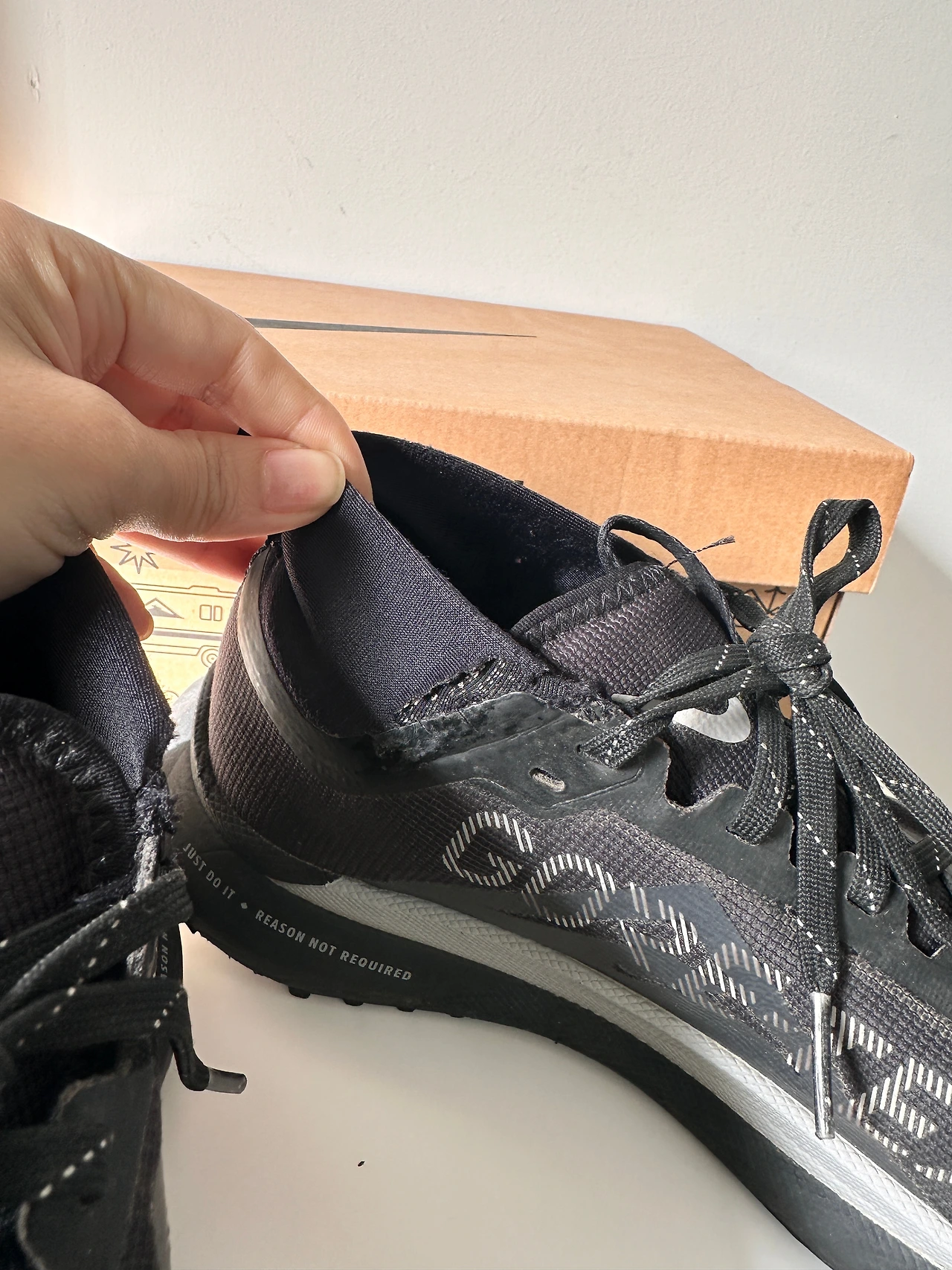 나이키 페가수스는 신발 앞과 윗등 부분도 말랑말랑 가벼워서 엄지나 새끼발가락이 눌리지 않아 너무 좋았다. 칼발이 아닌, 발볼이 넓은 편인 나에게 아주 편했다. 그리고 일반 나이키 운동화라도 새 신발이라면 신기 시작하고 며칠은 뒤꿈치가 까지기도 하는데 이 페가수스는 발목 마감이 살짝 천 밴드느낌? 양말같은 스타일로 돼있어서 발이 하나도 안 까져서 나도 놀랐다.