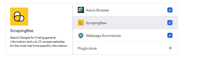 후보군에 있었던 Webpage Summerizer와 Scraping Bee를 각각 살펴보겠습니다. 설명에 차이는 있지만, 모두 특정 URLs로 접근하여 해당 내용을 추출하고 요약할 수 있다는 기능을 포함하고 있습니다.
