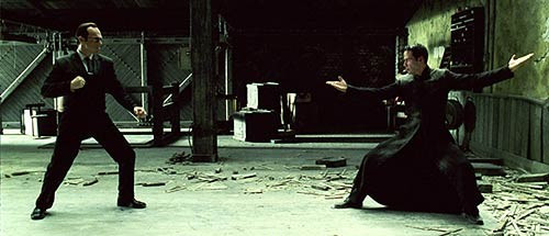 인간의 뇌로 기계의 네트워크를 통제하게 된 네오와, 기계의 데이터로 인간의 육체를 빼앗고 현실의 질감을 느끼게 된 스미스. 시스템의 룰을 깬 인간과 무한 증식하는 바이러스는 동전의 양면처럼 완벽히 닮아있습니다. 두 존재가 가상과 현실의 물리적 벽을 허물고 얽히는 이 치밀한 설정은, 결국 기계와 인간이 단순히 흑과 백으로 대립하는 것이 아니라, 이미 떼려야 뗄 수 없이 서로의 세계로 깊숙이 융합되어 있음을 보여주는 영화의 가장 소름 돋는 은유입니다.