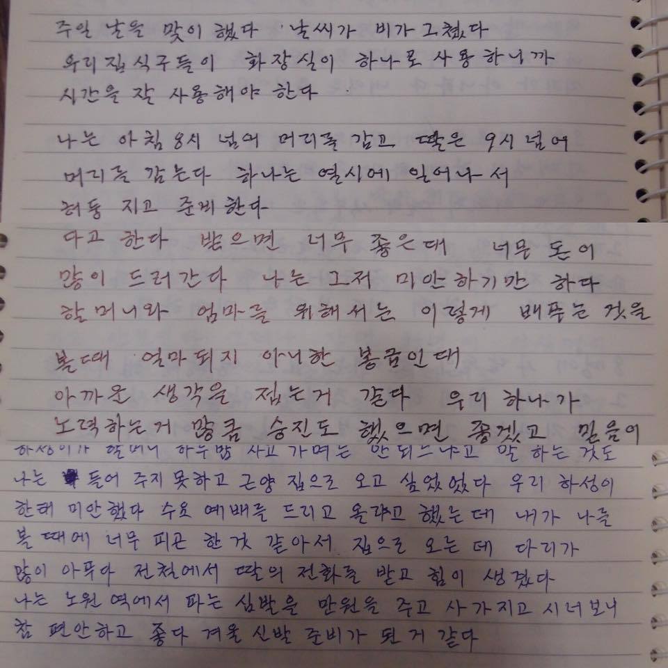 저를 키워준 외할머니가 돌아가신 후 발견한 일기장을 유품으로 간직하고 있습니다. 우리 할머니의 이름은 손순련이었습니다. 순할 순. 잇닿을 연. 한 번도 불러본 적 없다는 게 애석할 정도로 참 예쁜 이름입니다.