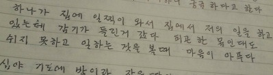연휴 동안 할머니 몸에 남은 물이란 물은 다 빠진 듯, 아예 뼈밖에 안 남았다는 엄마 말을, 어제 보고 이해했다. 할머니 다리가, 무릎과 발목이 모두 내 작은 손아귀 안에 잡혔다. 산송장이라는 말이 번뜩였다. 누워있는 것도 힘겨운 듯 숨을 쌕쌕 쉬었다. 그리곤 어린애처럼 나를 보며 울어대기 시작했다. 울음은 갈라진 목소리 틈으로 숨소리와 섞여 간신히 내뱉어졌다. "할머니 힘들어" "짜증 나" "다 귀찮아" "너도 귀찮아" "가" ... "천국에서 부른다" 한 달 전, 영정사진을 준비하자던 아빠 말을 들을 때 "그래, 준비만"했던 것이 이제 오롯이 받아들여졌다. 운전하고 돌아오는 길, 눈앞이 흐릿해져서 가다 서다를 반복했다.