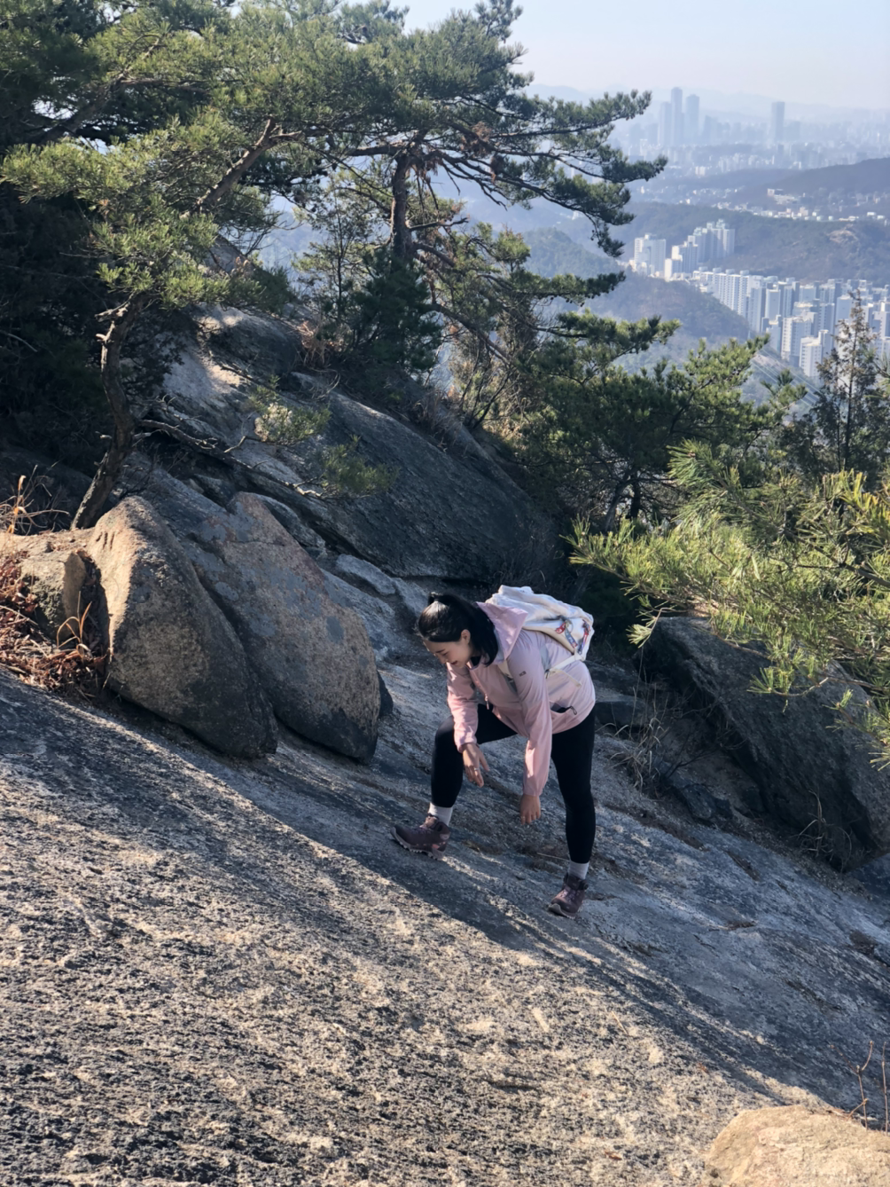기점은 코로나19였다. 강도높은 사회적 거리두기가 처음 시행되었던 작년 3월, 주변 사람들이 등산에 관심을 갖기 시작하는게 느껴졌다. 봄바람은 불어오고 집에만 있자니 갑갑하고, 비교적 사람이 붐비지 않는 산이 안전해보였던 것 같다. 엄빠들의 형광색 등산복이 아닌 레깅스나 조거팬츠 등 힙해보이는 등산 패션도 ‘나도 한번쯤 가보고 싶다’ 생각하게 만들었을지도 모르겠다. 혹은 인스타 피드에 등산 인증샷이 유행처럼 번지니 호기심이 생겼을 수도 있고. 만나면 술만 마시던 친구들이 등산 가자고 말을 꺼냈을땐 ‘등산이 정말 트렌드구나’ 체감할 수 있었다. 좋아하는 취미를 좋아하는 친구들과 함께할 수 있다니! 나로서는 더없이 쌍수 들고 환영할만한 변화였고 친구들과의 만남이 두근두근 기다려졌다.