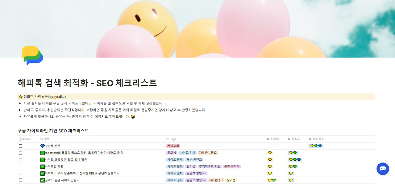 그 고민에 실마리를 찾으려, 구글 공식 가이드를 보고 제 나름 정리한 SEO 체크리스트를 만들었습니다.