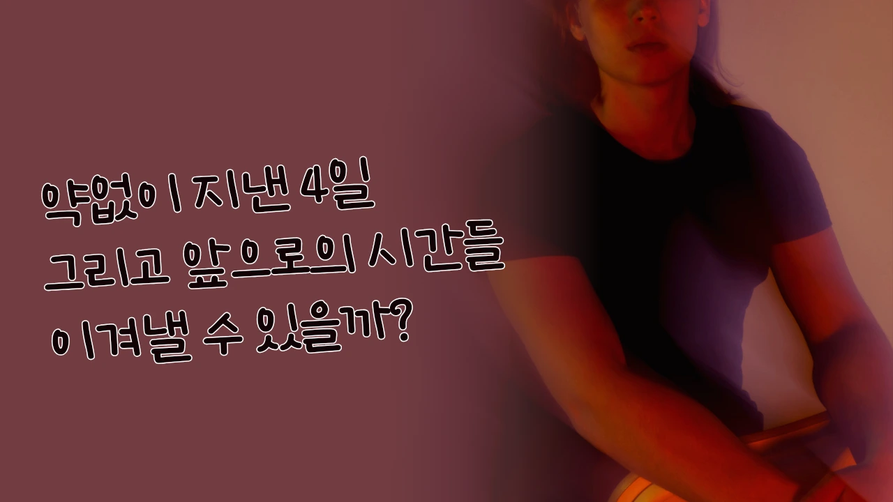눈물이 울컥울컥 올라온다. 참아낸다. 신경안정제라도 먹어본다. 심장의 볼륨이 줄어들지 않는다. 빨간 이명의 소리는 커져가고 겨우 달랬던 눈물이 다시 차올라온다. 발작이다. 무섭다. 그래서 다시 꾹 참아낸다. 언제까지 참아낼 수 있을까? 스스로가 장담하기 어려운 시간이다.