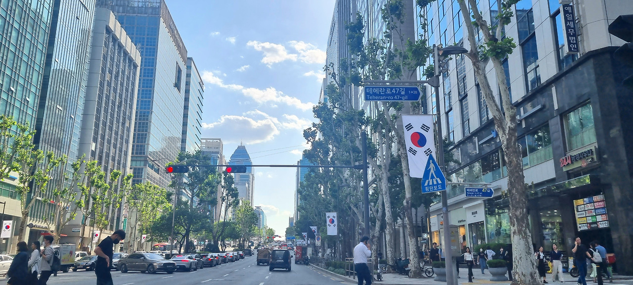 빨간 신호에 잠시 멈춤.